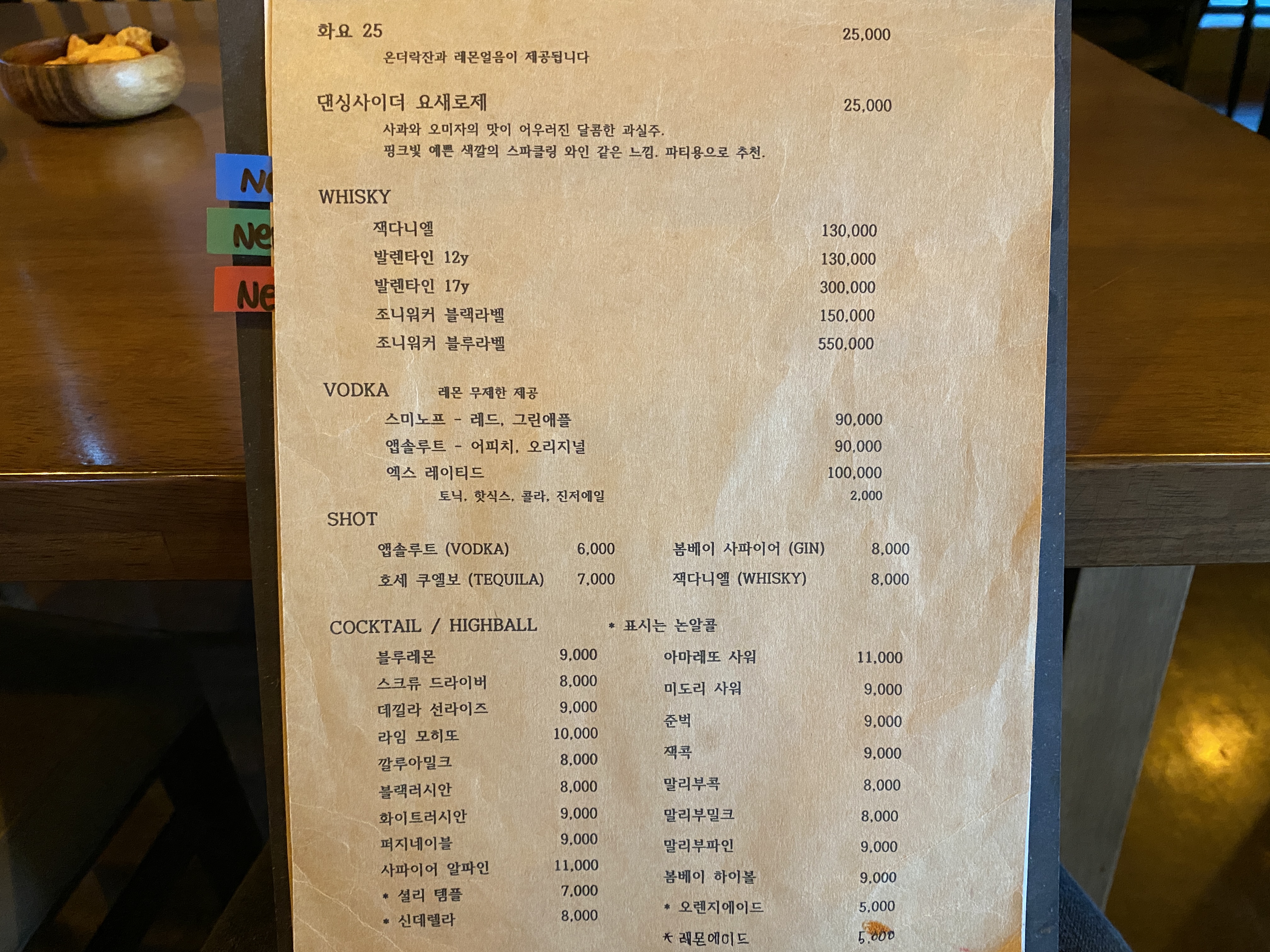 주류 메뉴판 크게 보기 ↓