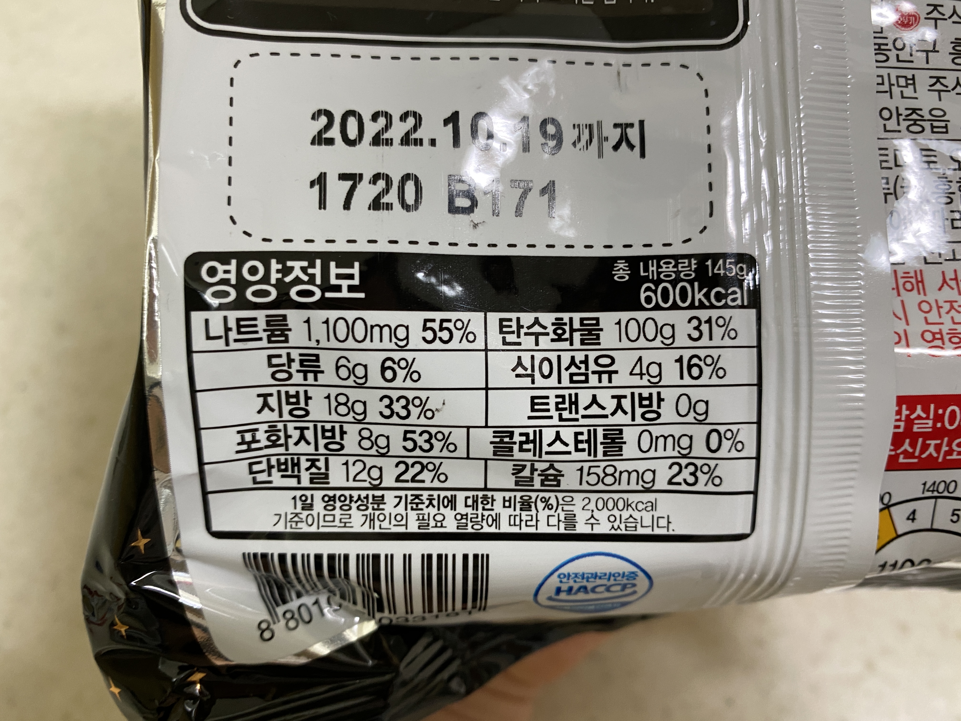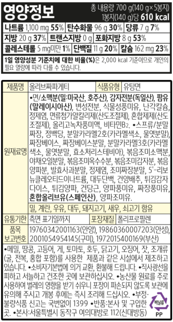 아래사진의 농심 짜파게티 영양정보와