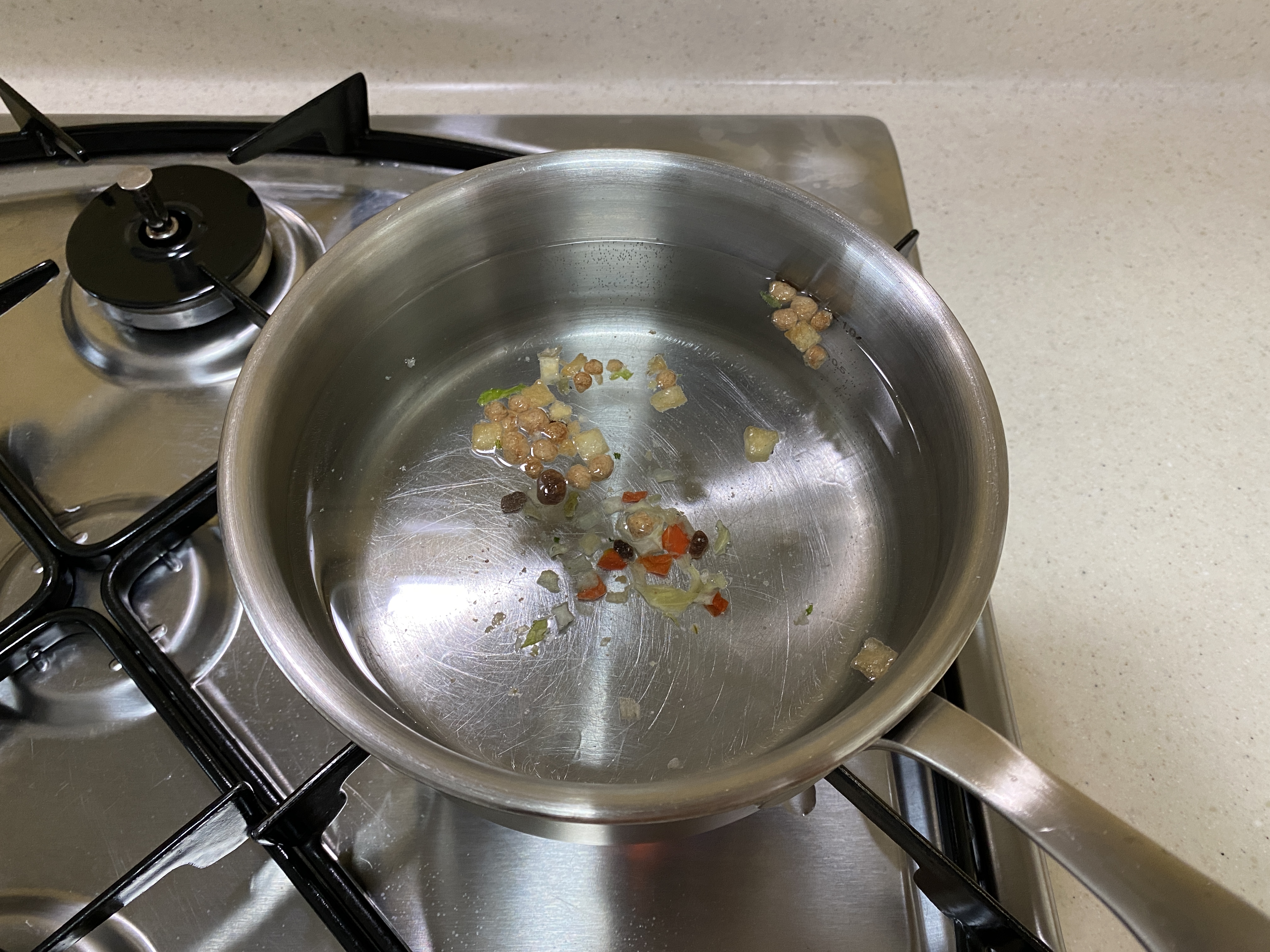 1. 물 600ml에 건더기스프를 넣고 물을 끓인다.
