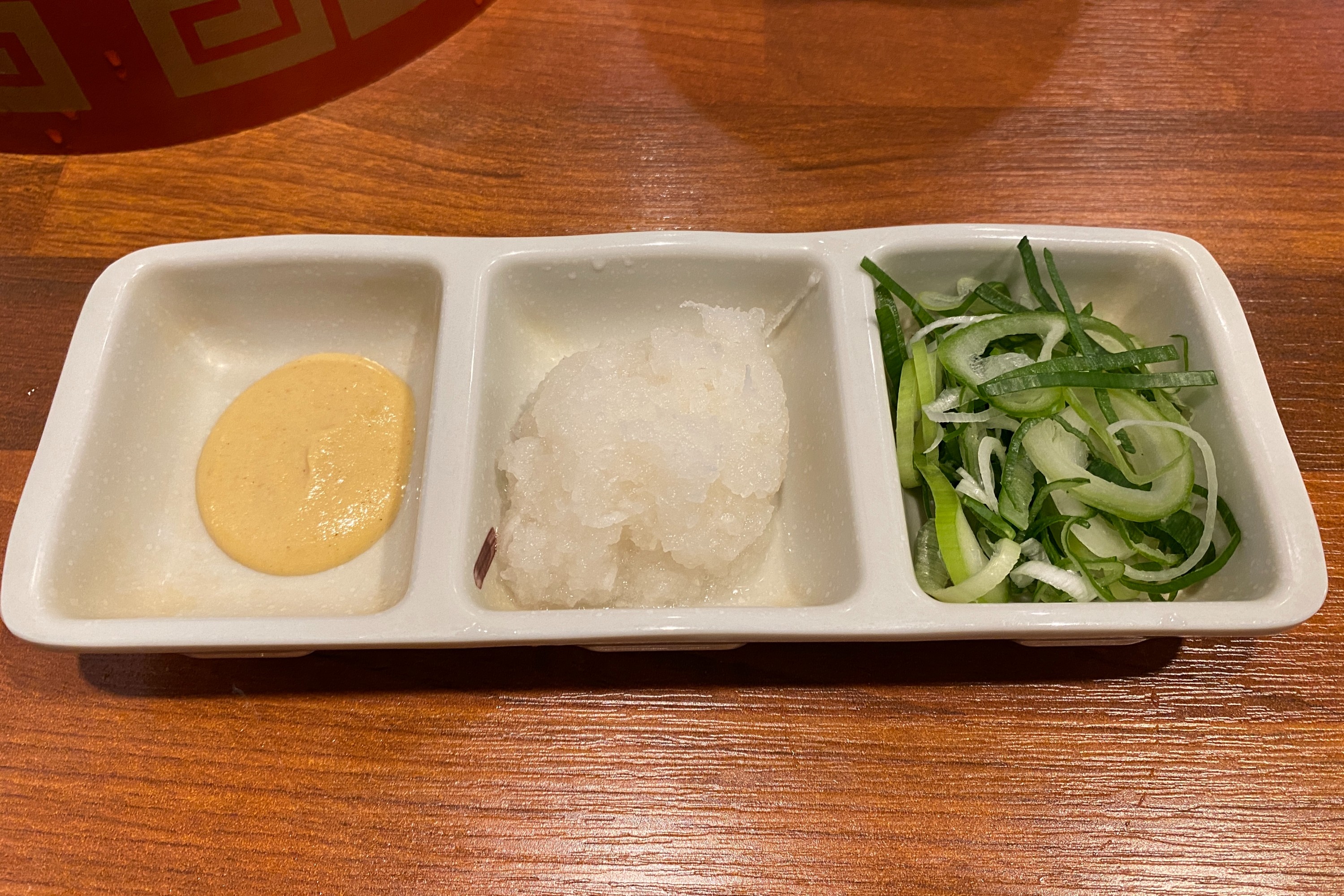 밑반찬으로는 단무지, 겉절이, 산고추절임이 있고