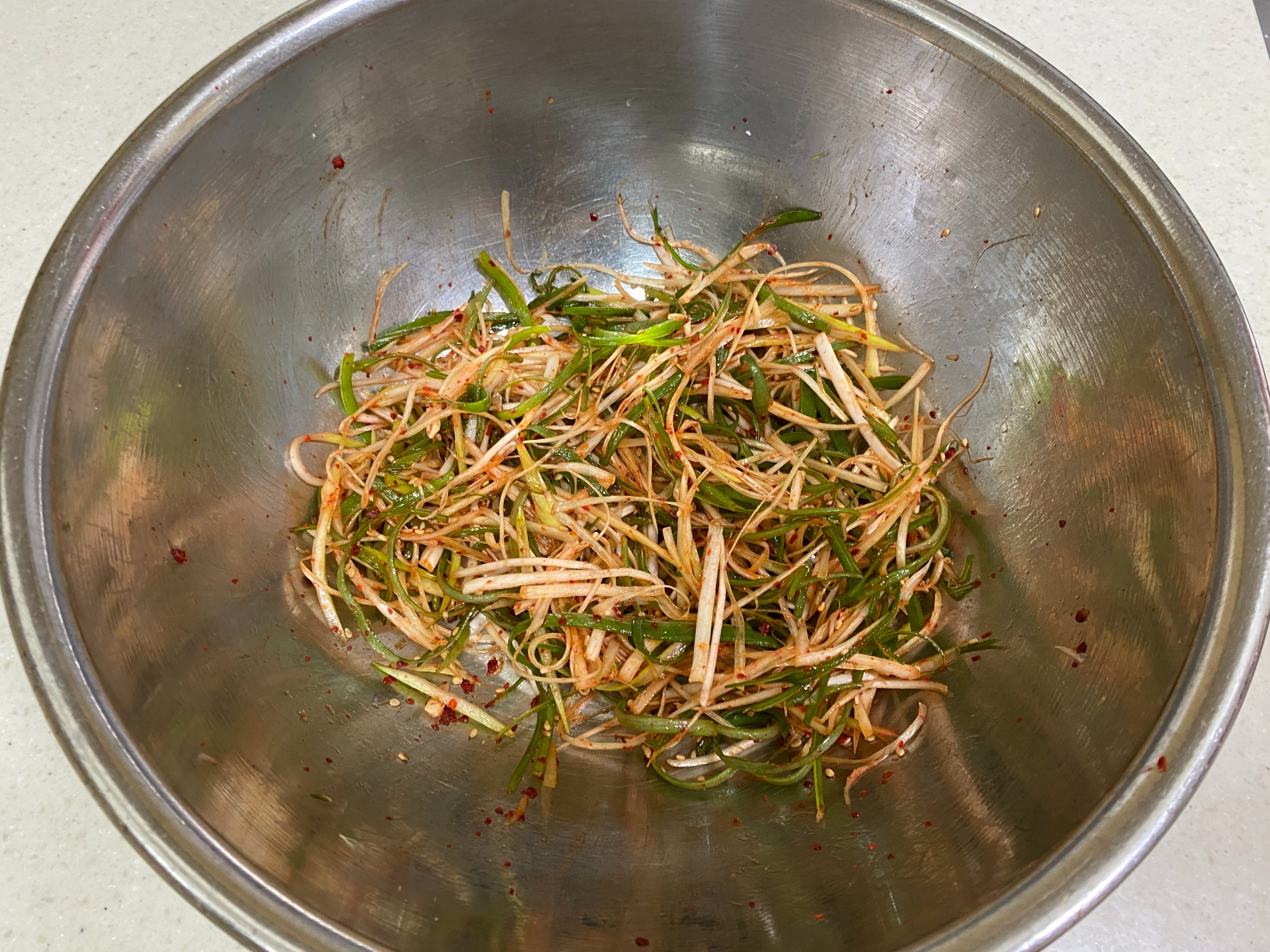(파채를 큰 그릇에 버무려야 골고루 잘 섞이고