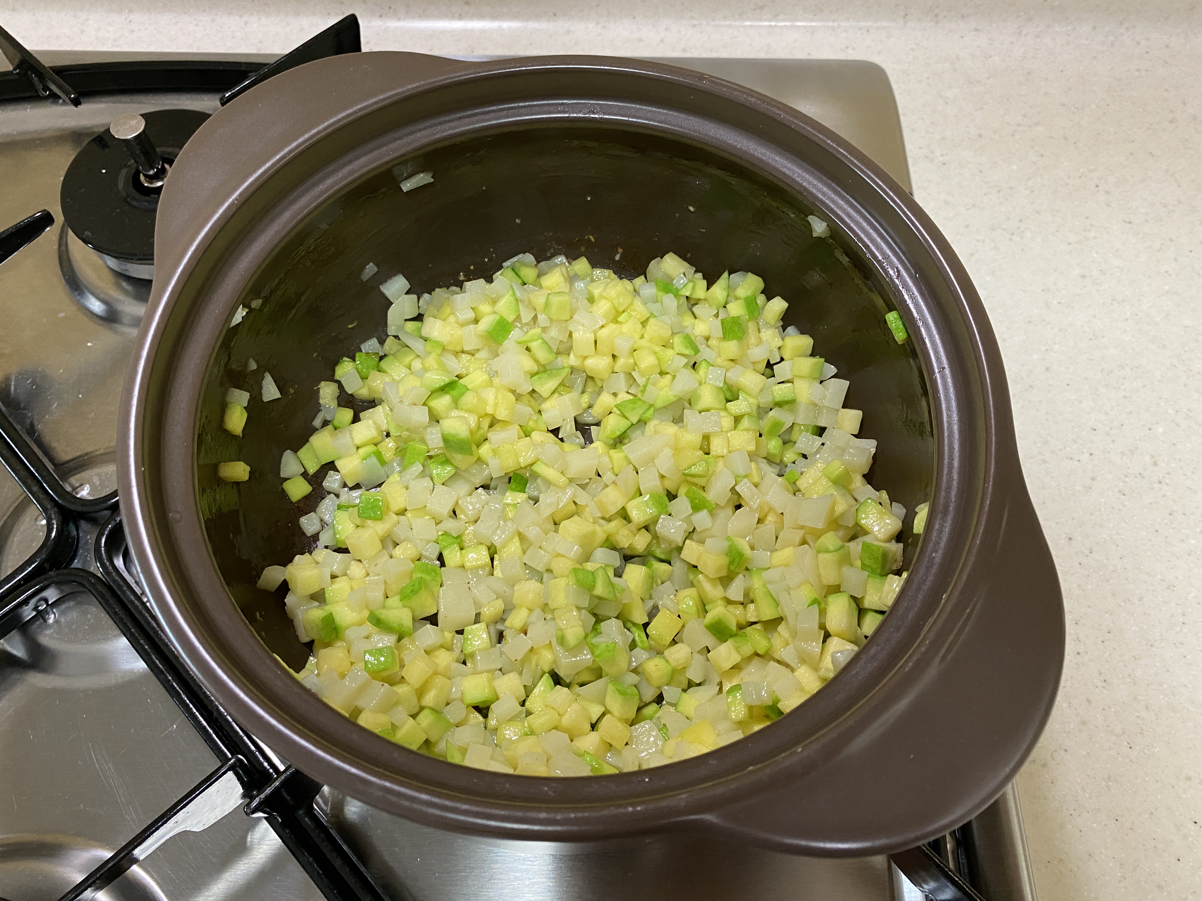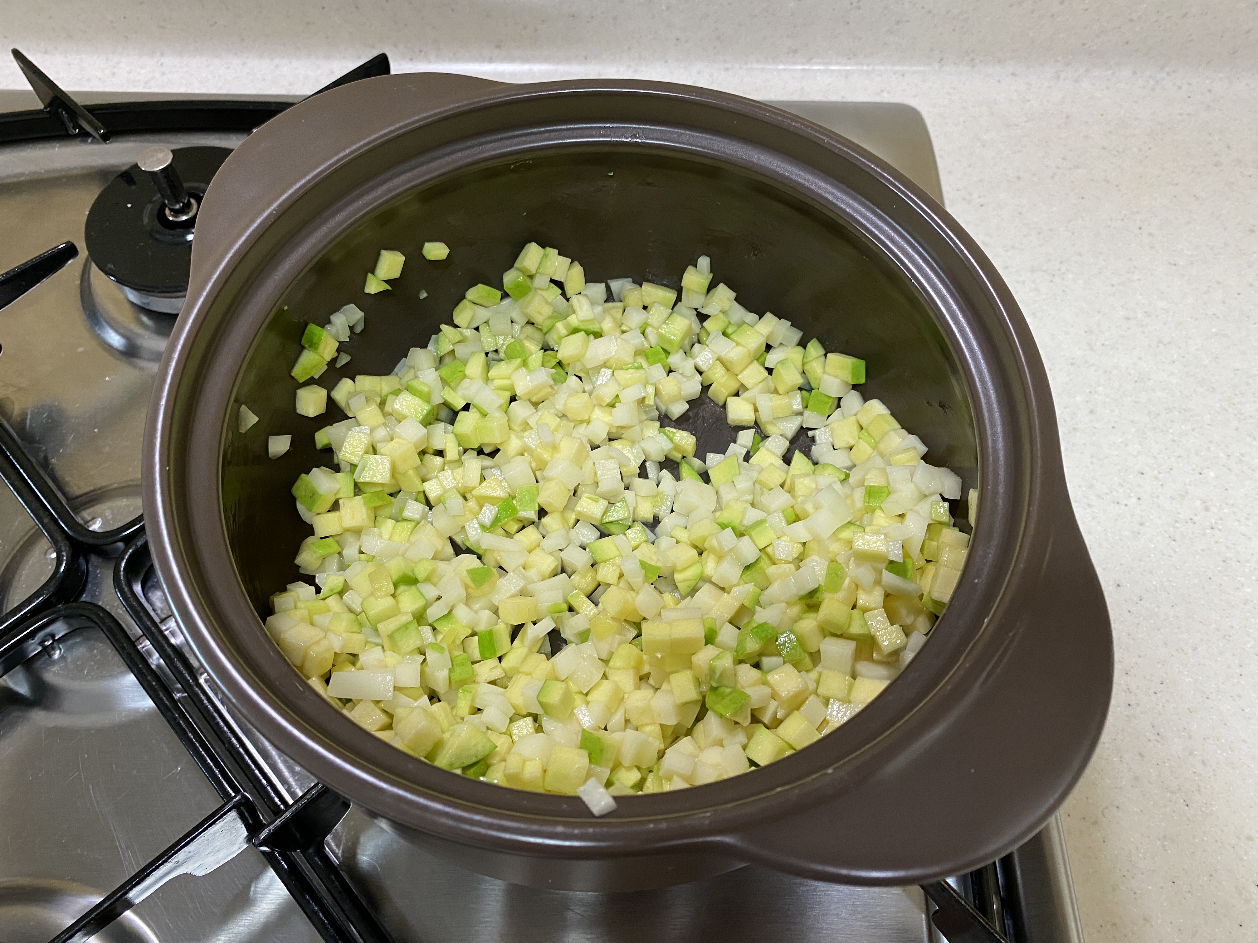 3. 뚝배기에 애호박과 감자를 담고
