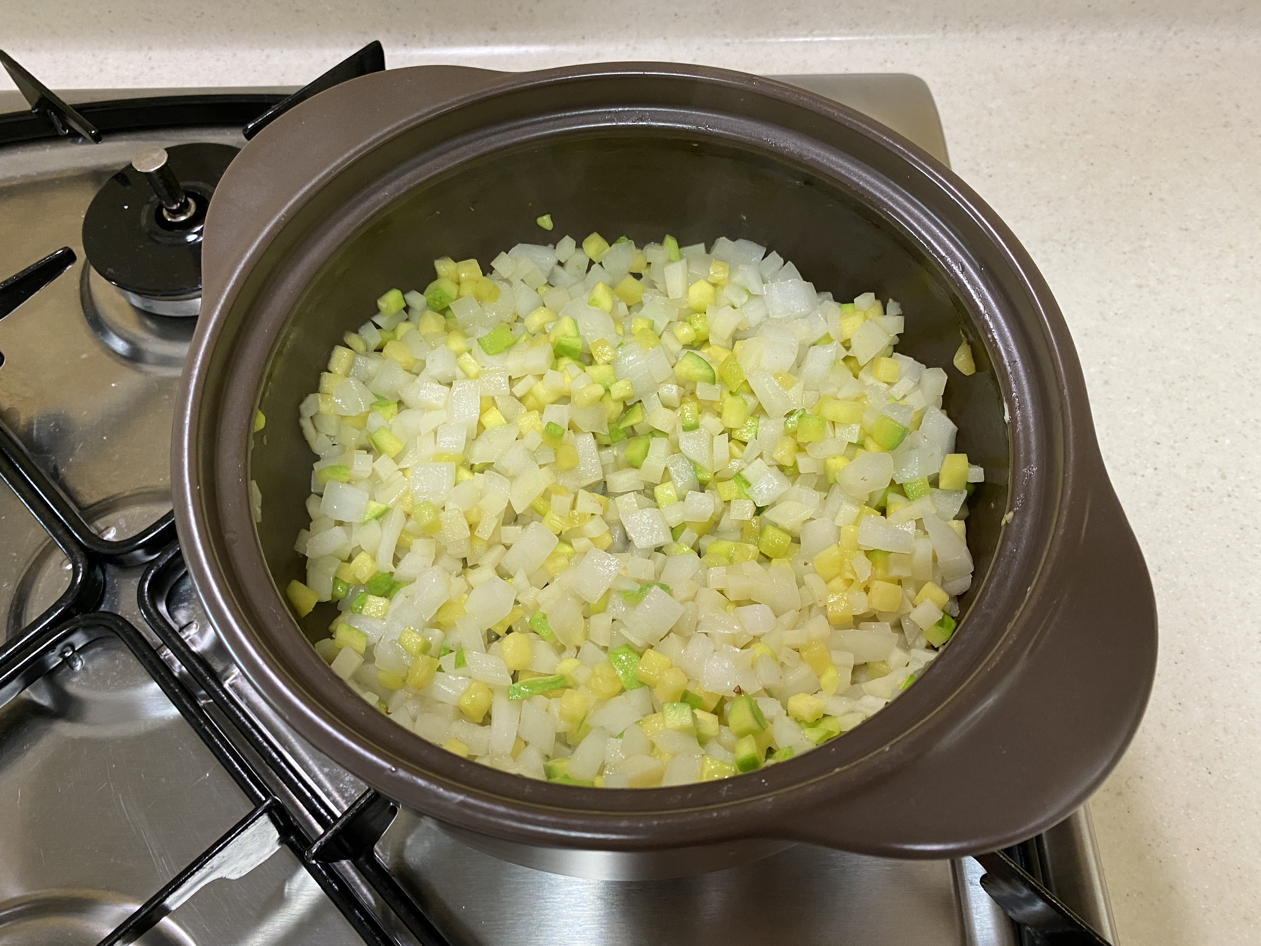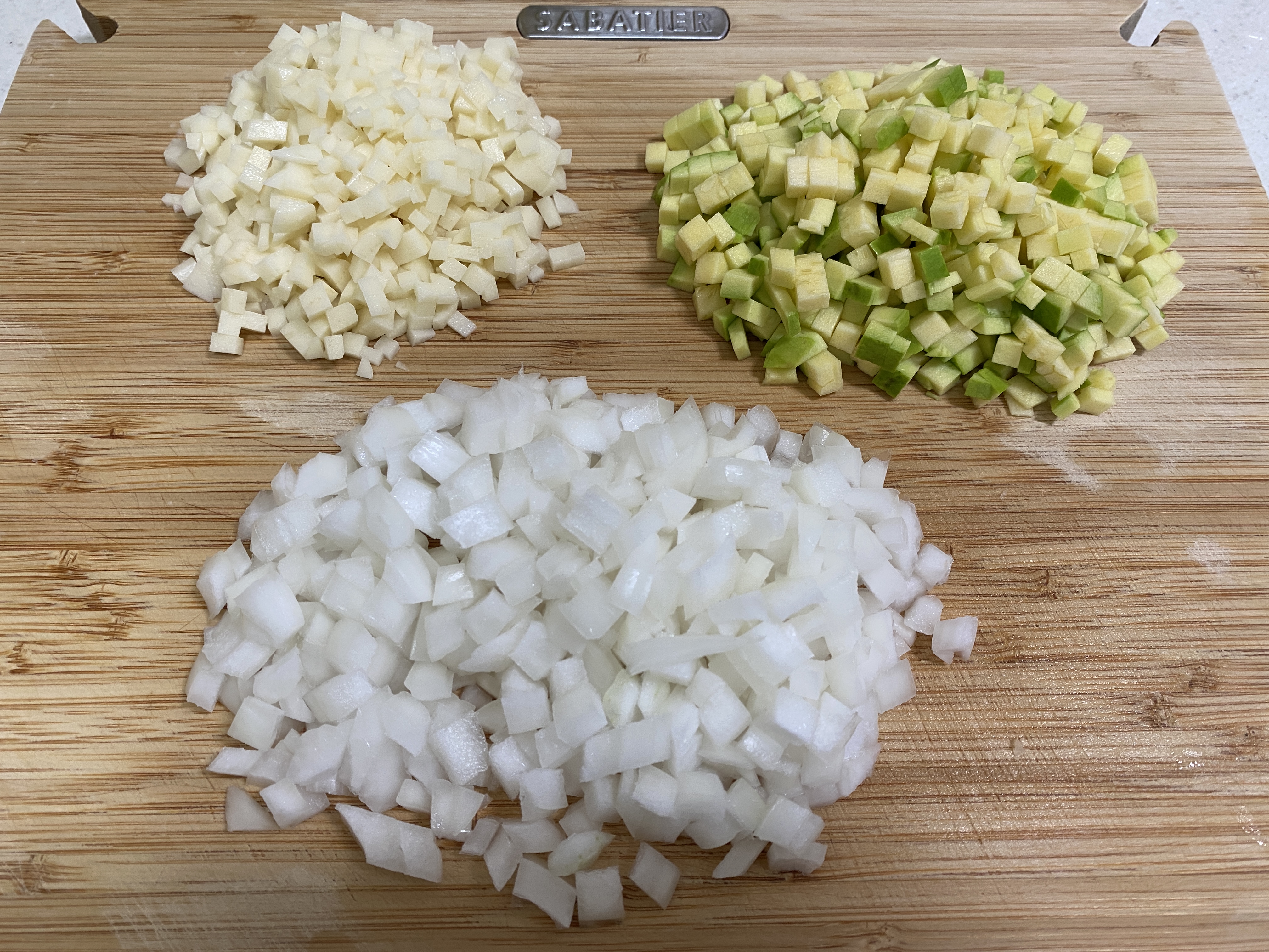 양파 1/2개, 애호박 1/3개를 잘게 다져준다.