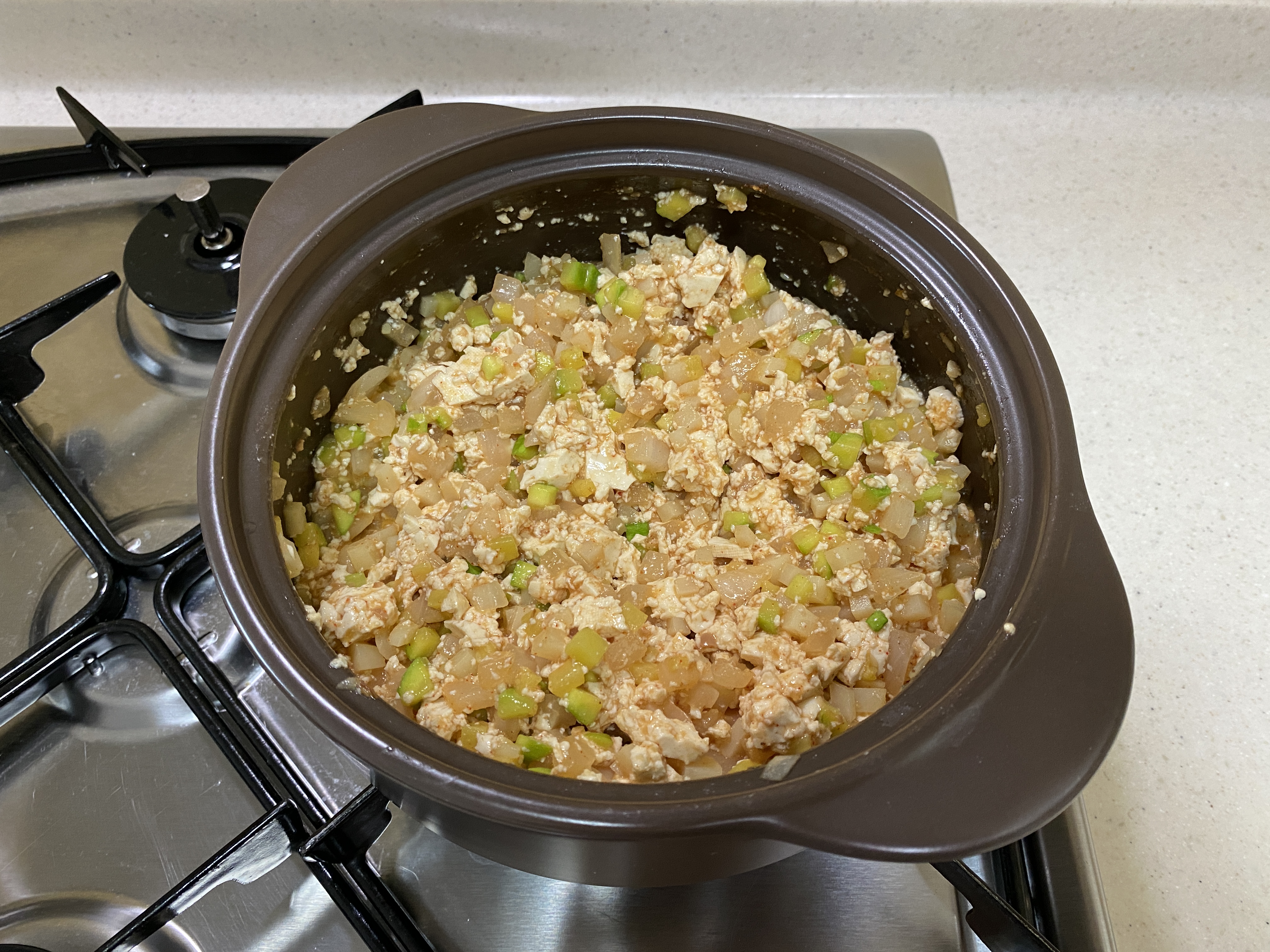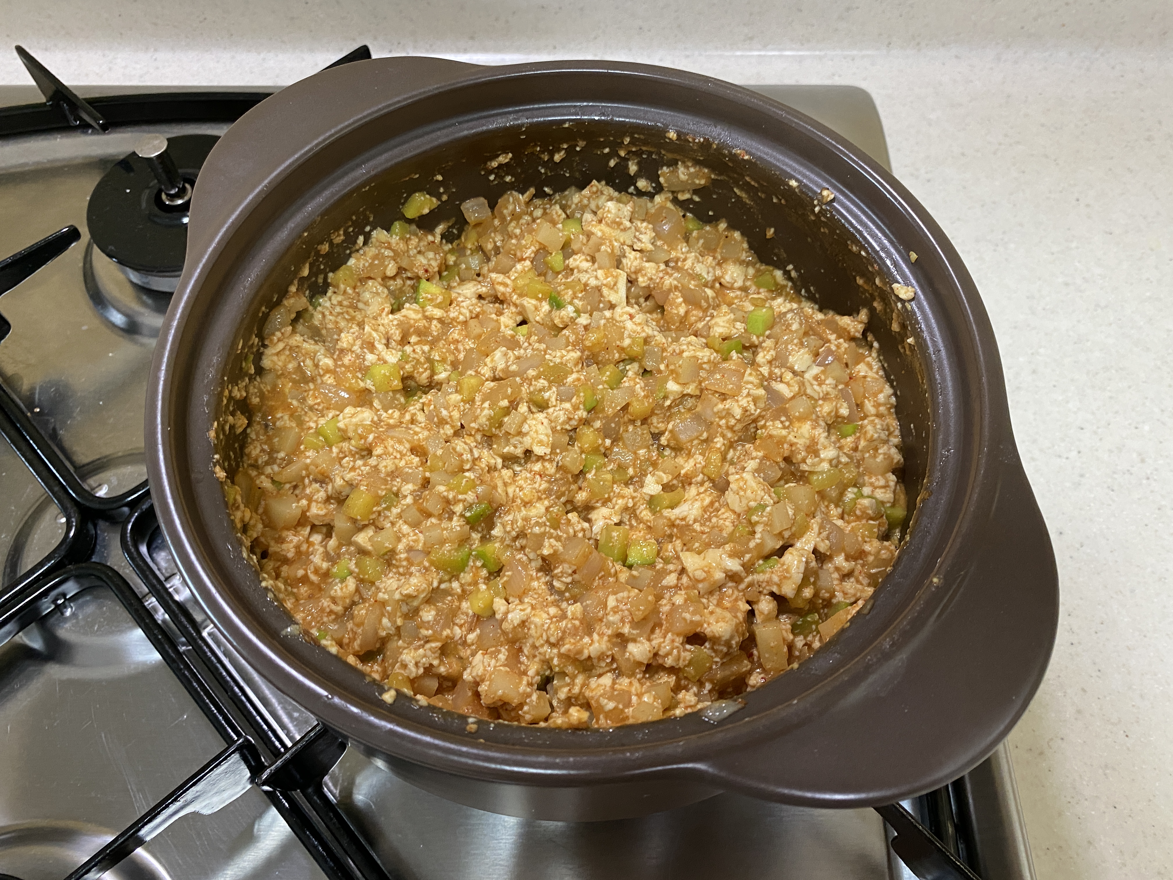 5. 으깬 두부를 넣고 된장 2큰술,