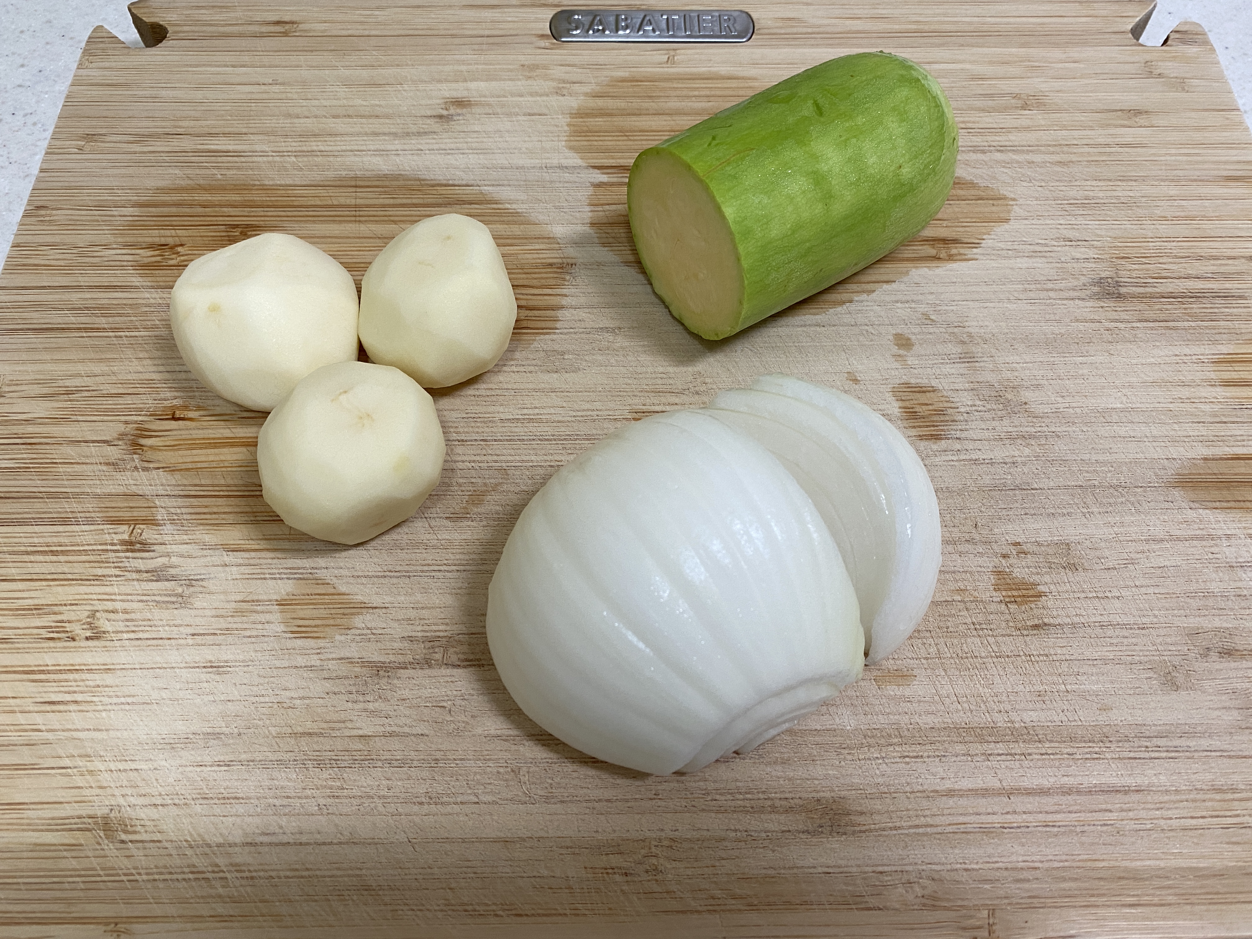 두부 1모, 알감자 3개(감자 1개 분량), 양파 1/2개,