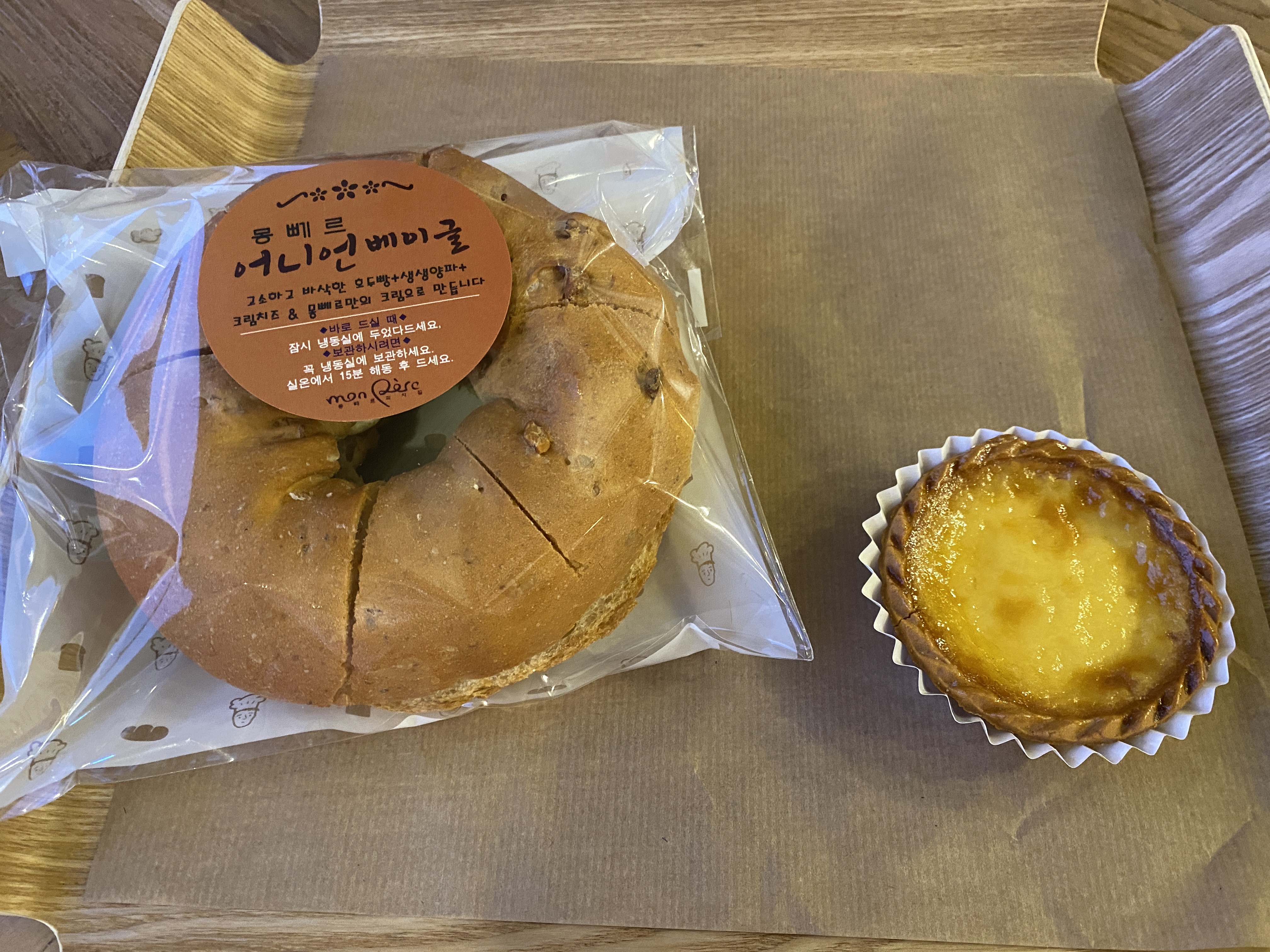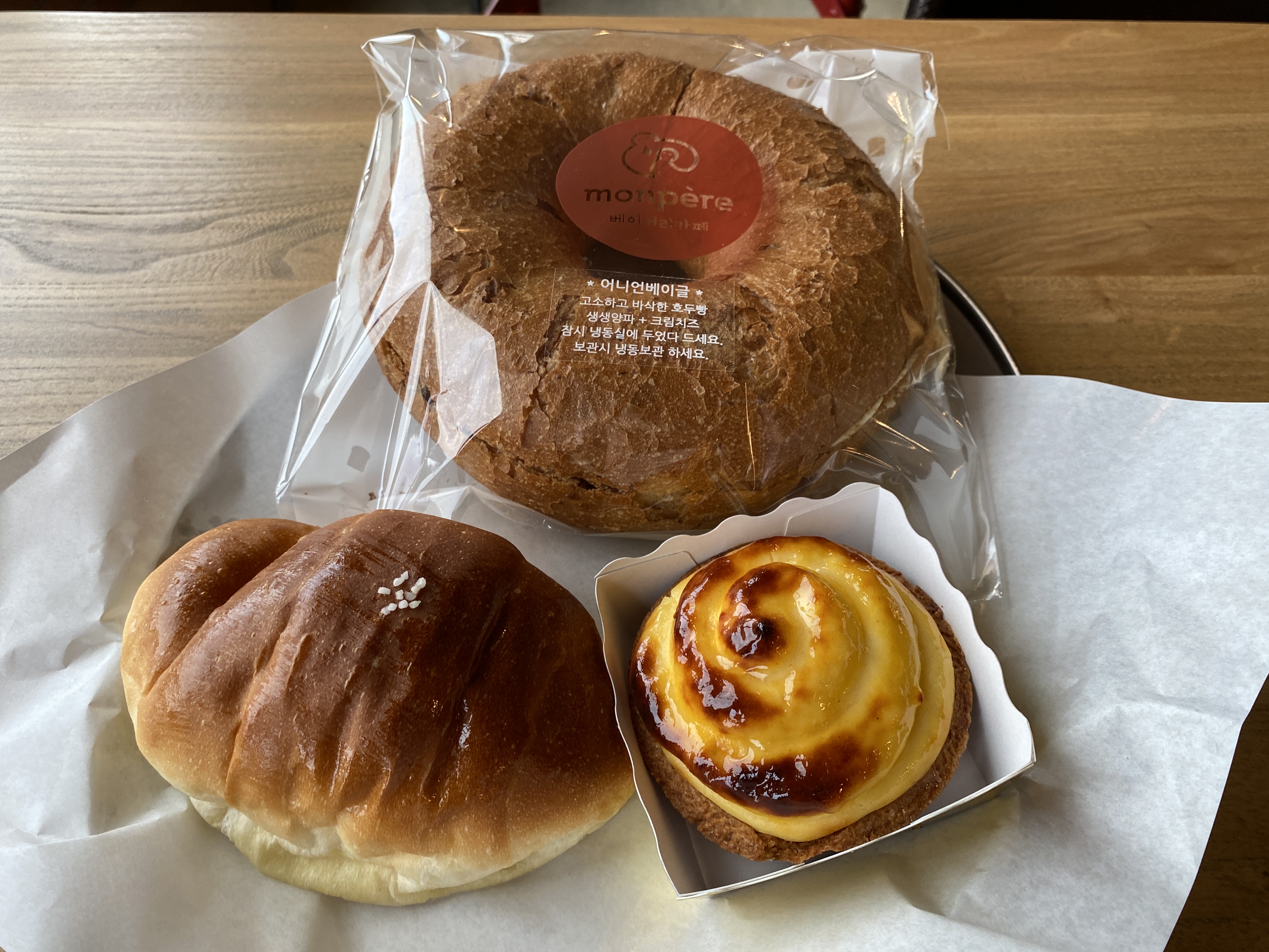 빵은 어니언베이글과 에그타르트를 골랐다.