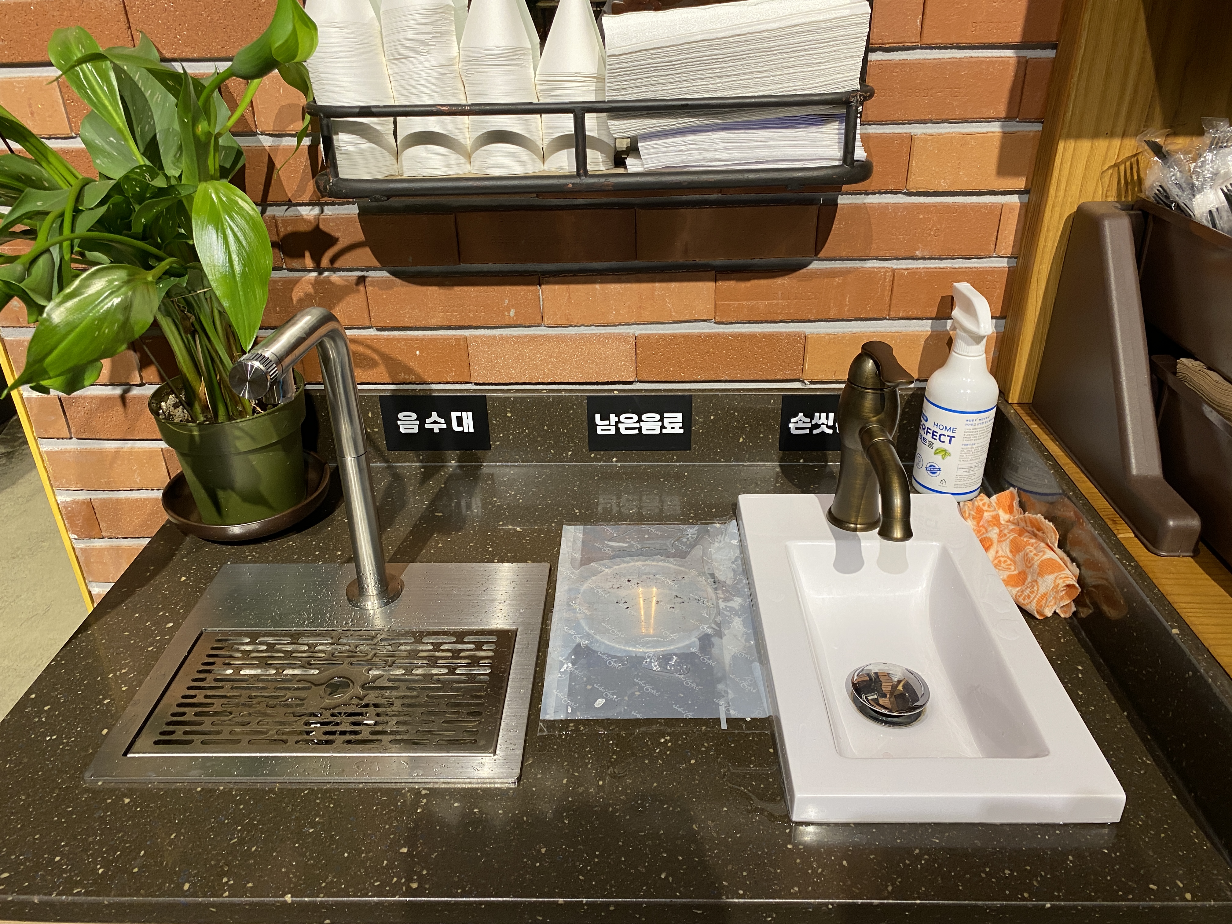 셀프바에는 포크와 컵홀더,