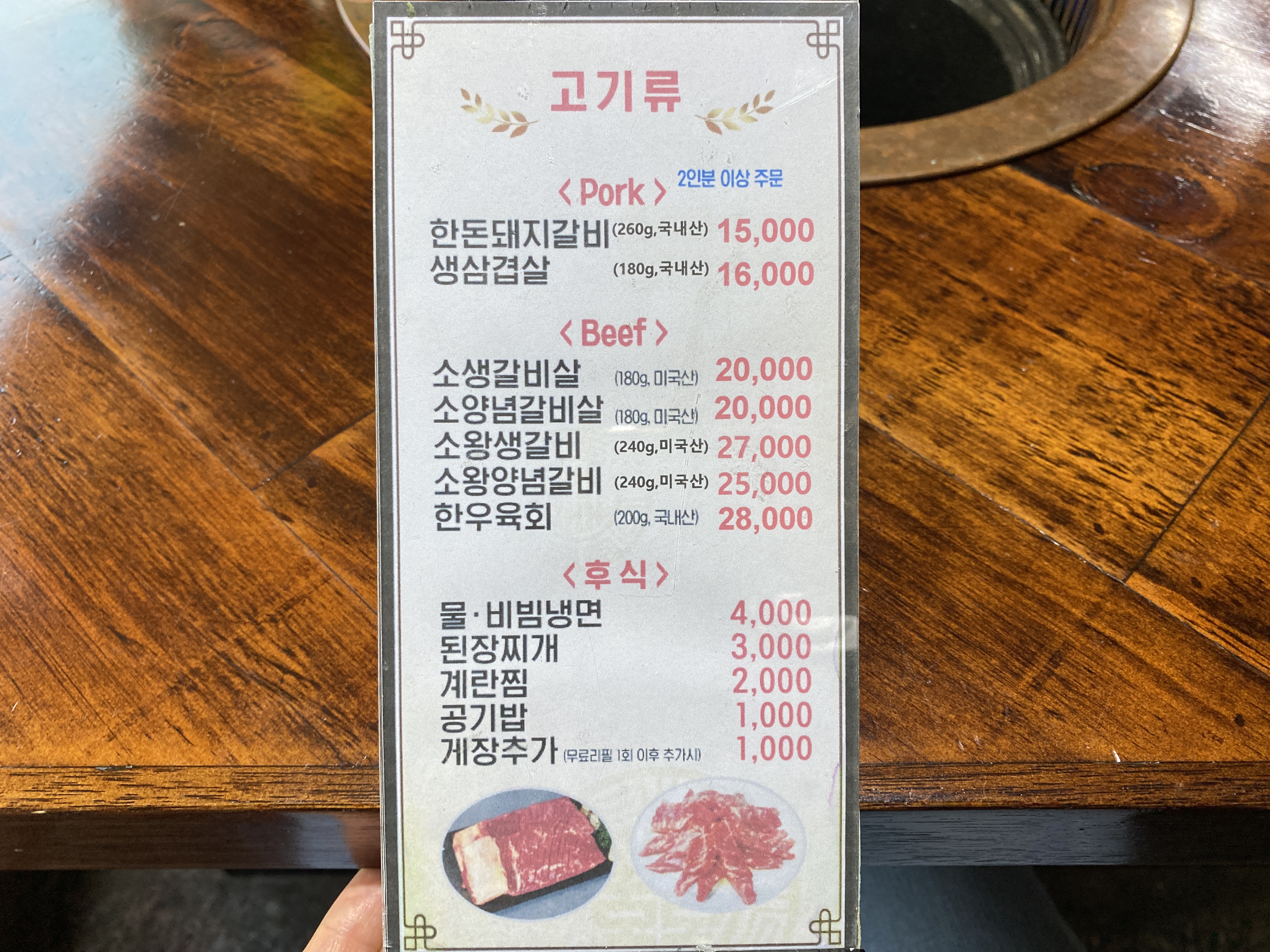 소생갈비만 맛있는 "하한정" 토실군께서 생갈비가 자시고 싶다고 하셔 방문하게 된 하한정이다. 이곳의 영업시간은 다음과 같고 가게의 내부는 꽤 넓직했다. 이곳의 메뉴판이다. 우리는 소왕생