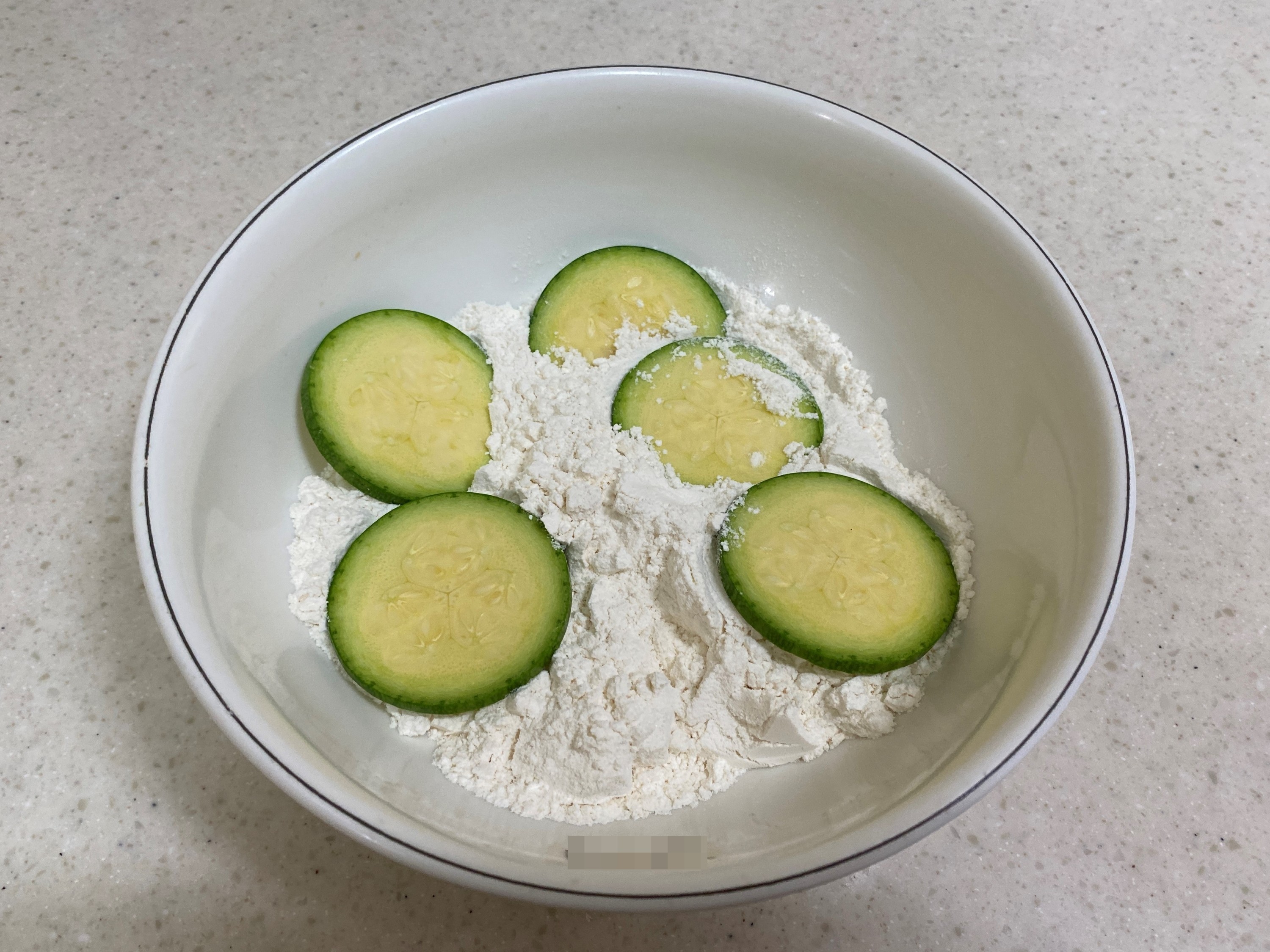 4. 부침가루에 애호박을 넣고