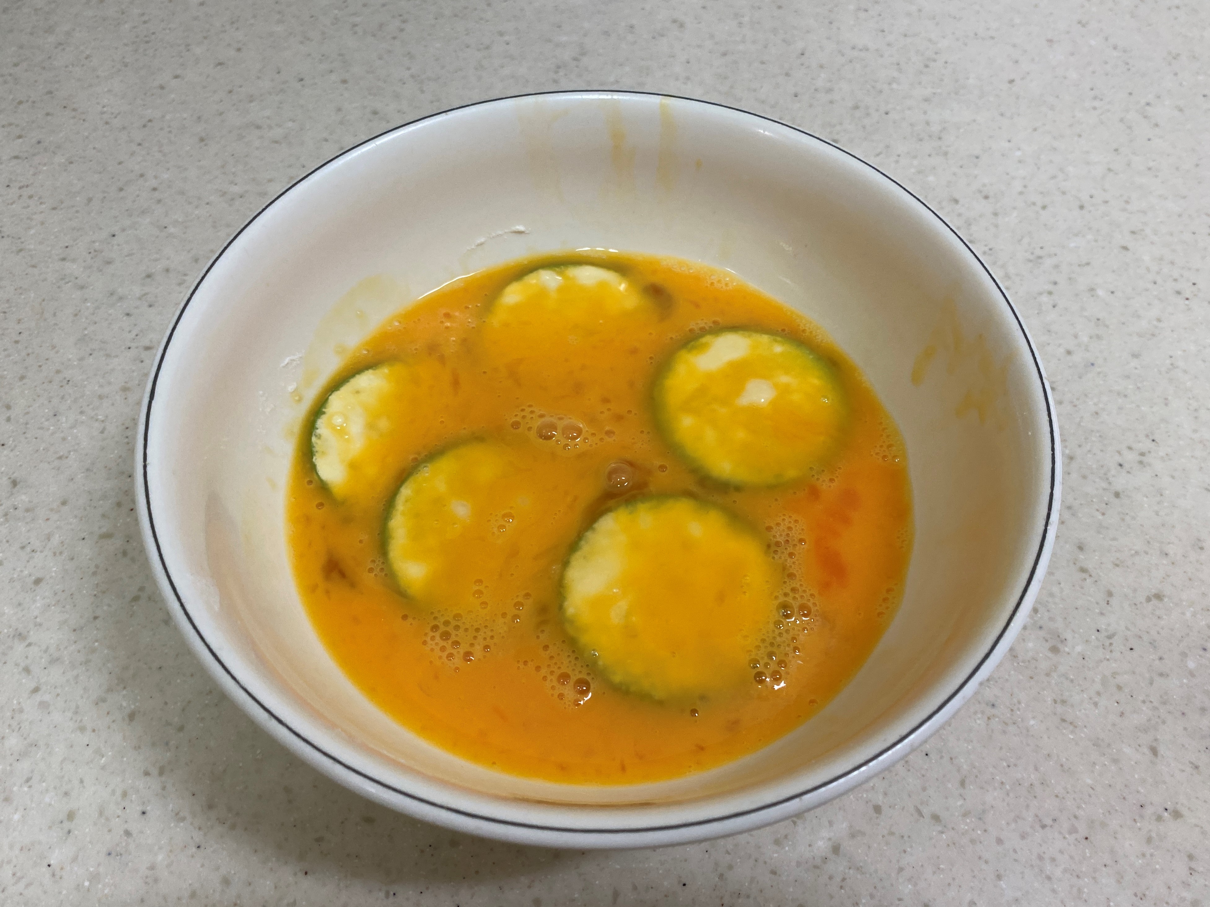 5. 계란물에 애호박을 넣고