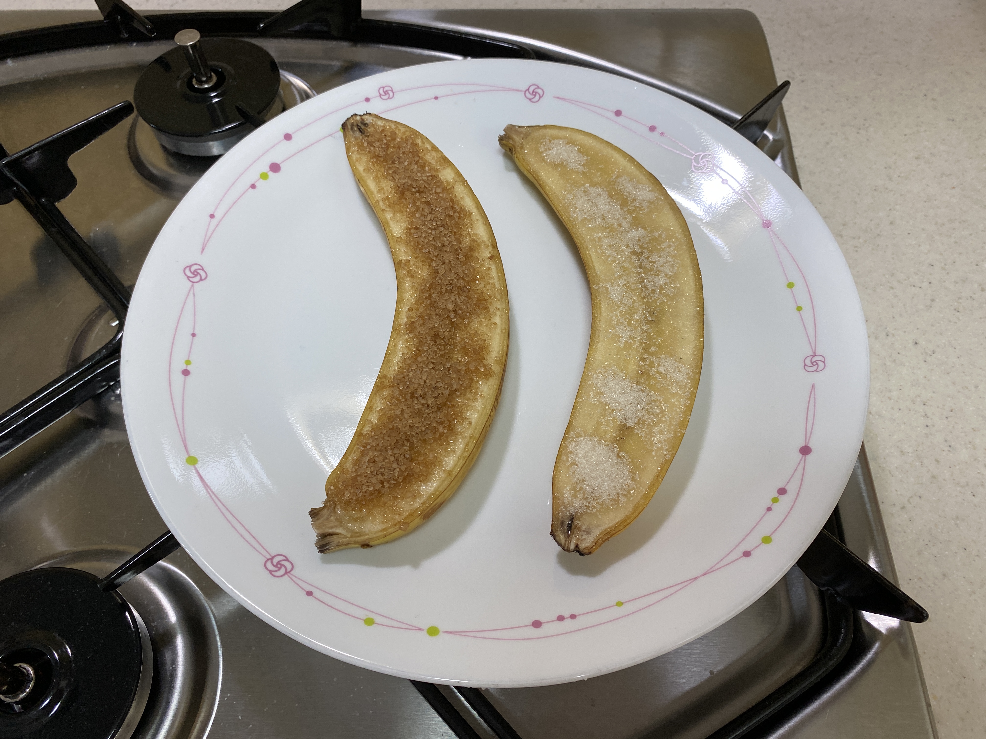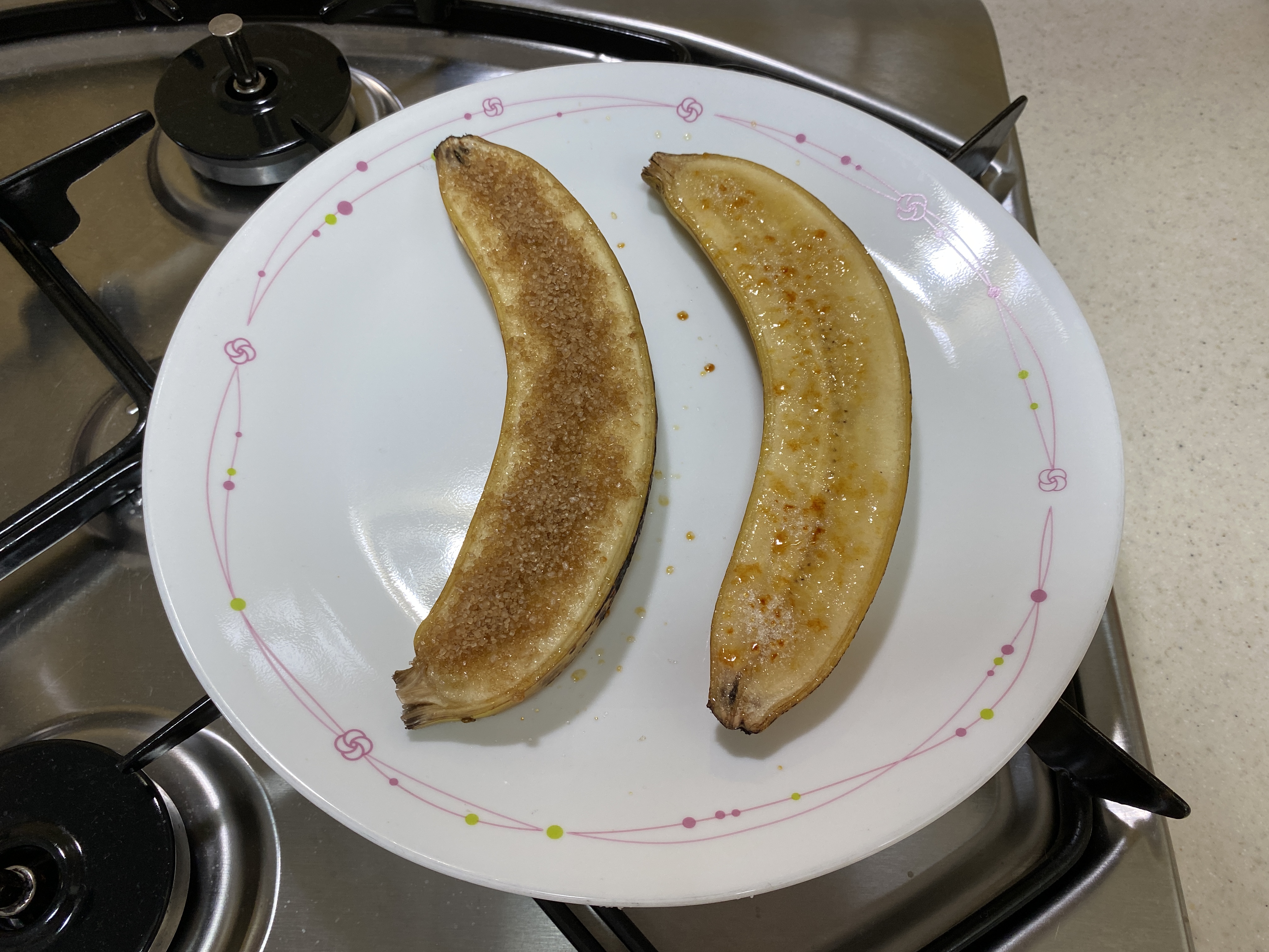 잘익은 바나나, 설탕, 토치