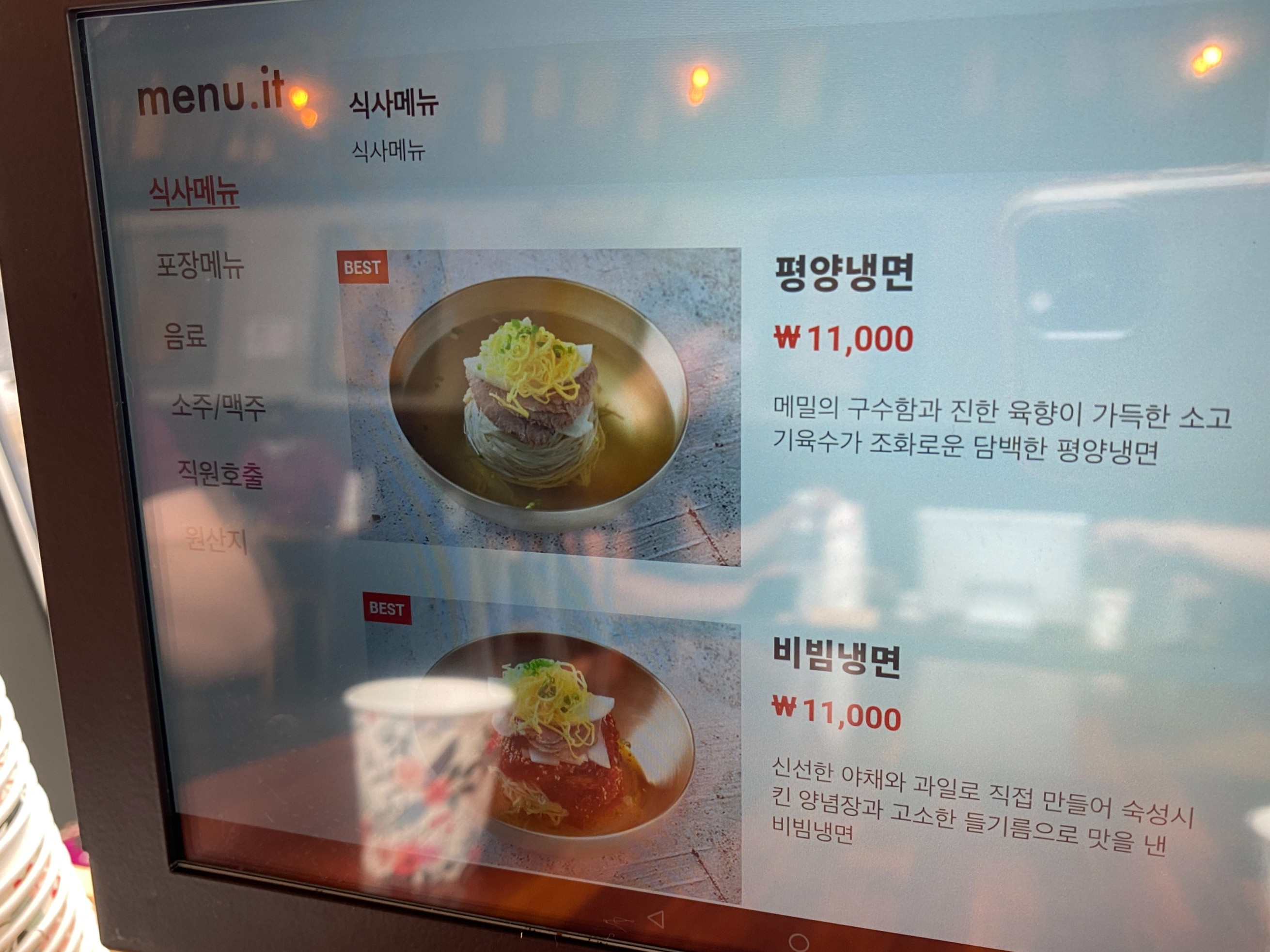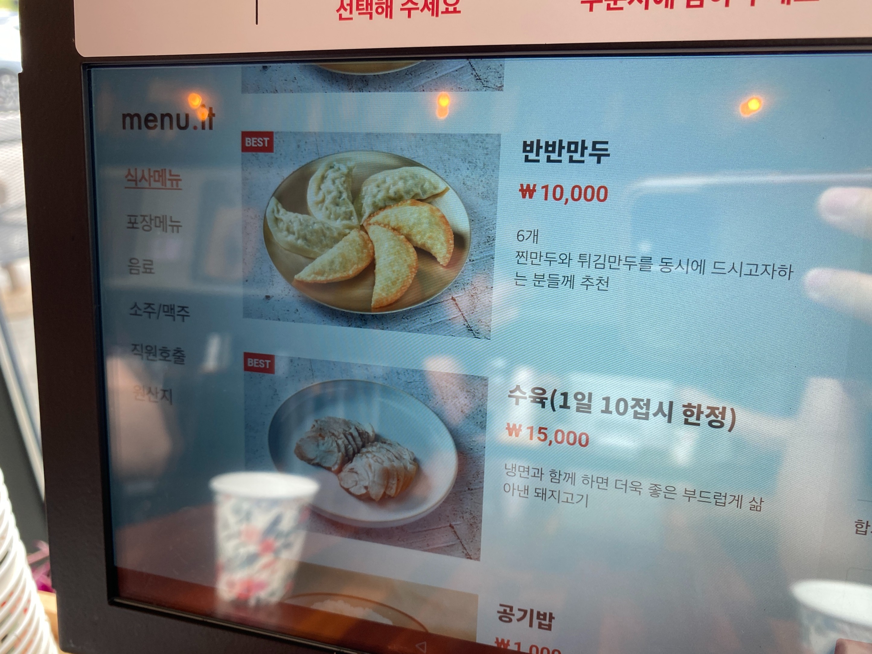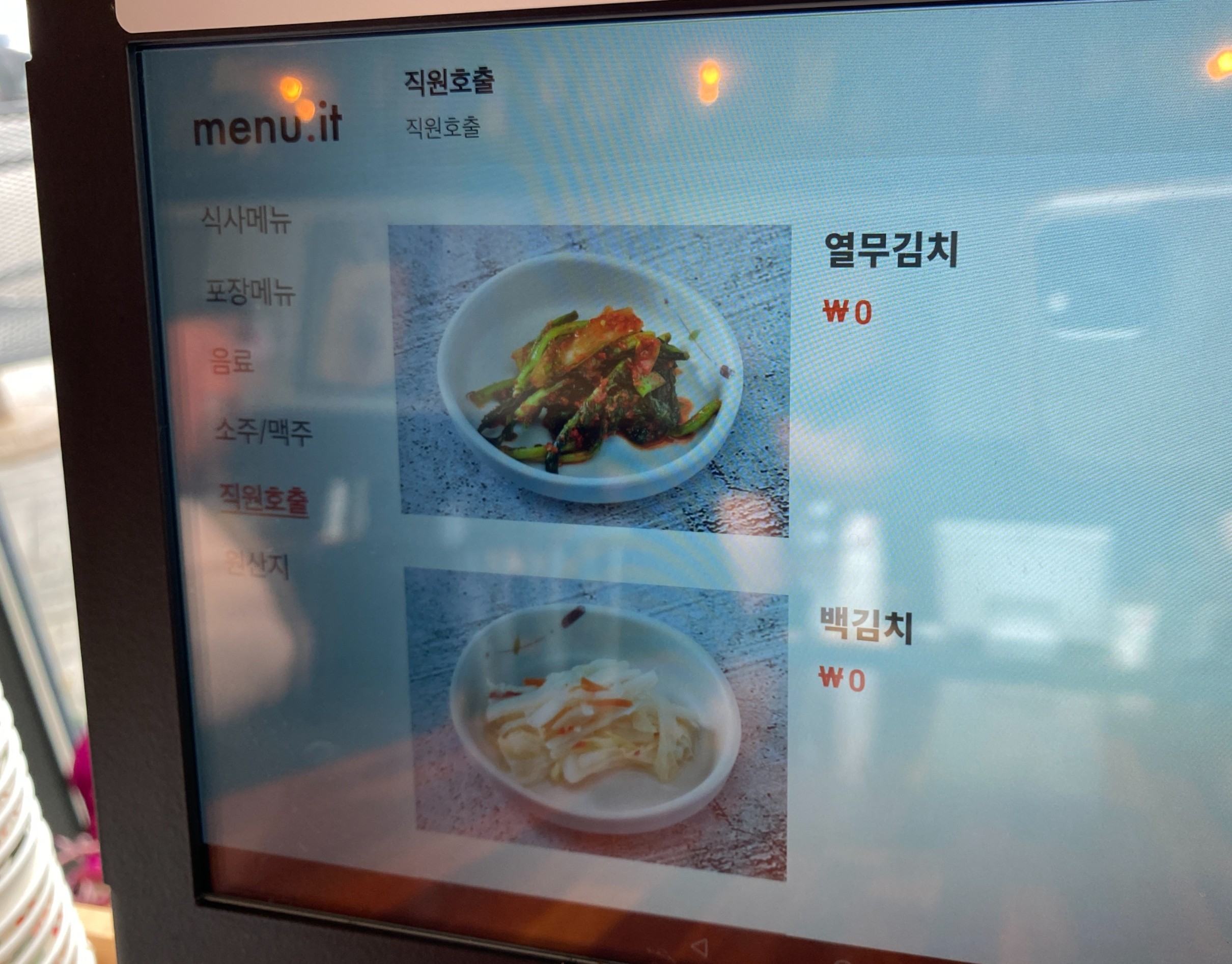 태블릿 메뉴판으로 요청해야 한다.
