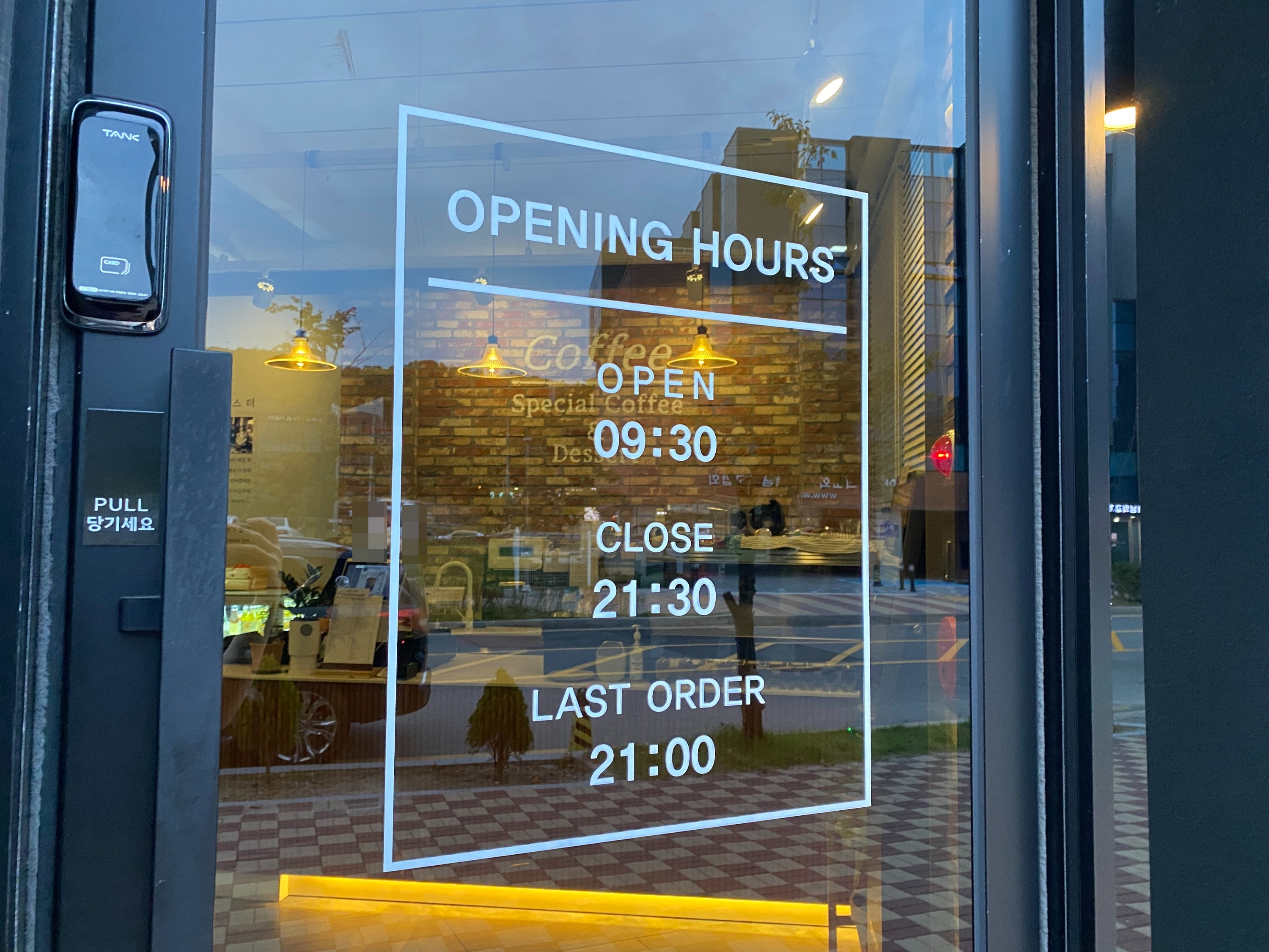 라스트오더는 오후 9시이다.