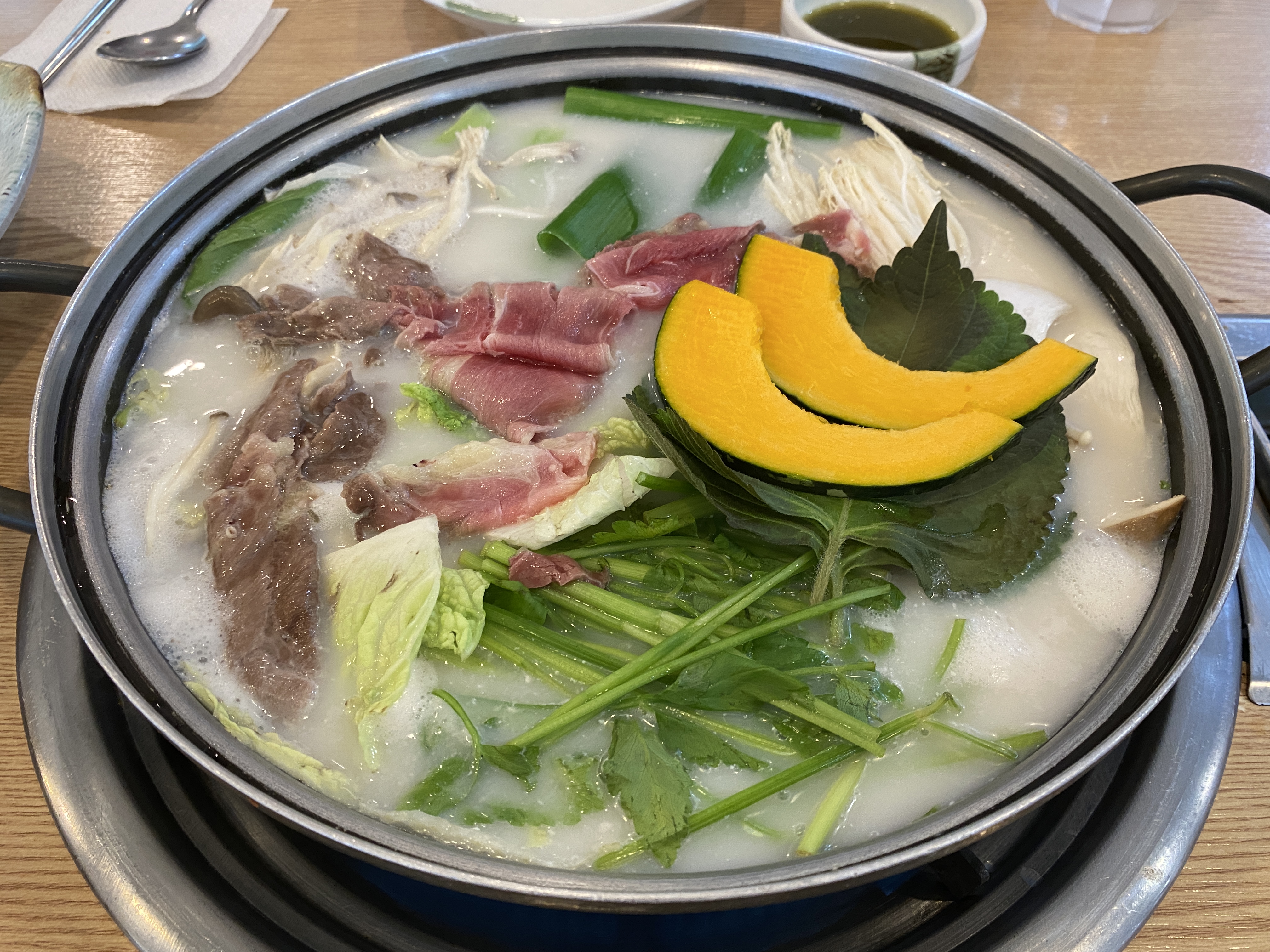 우리는 사골 소고기 만두전골 2인분을 주문했다.
