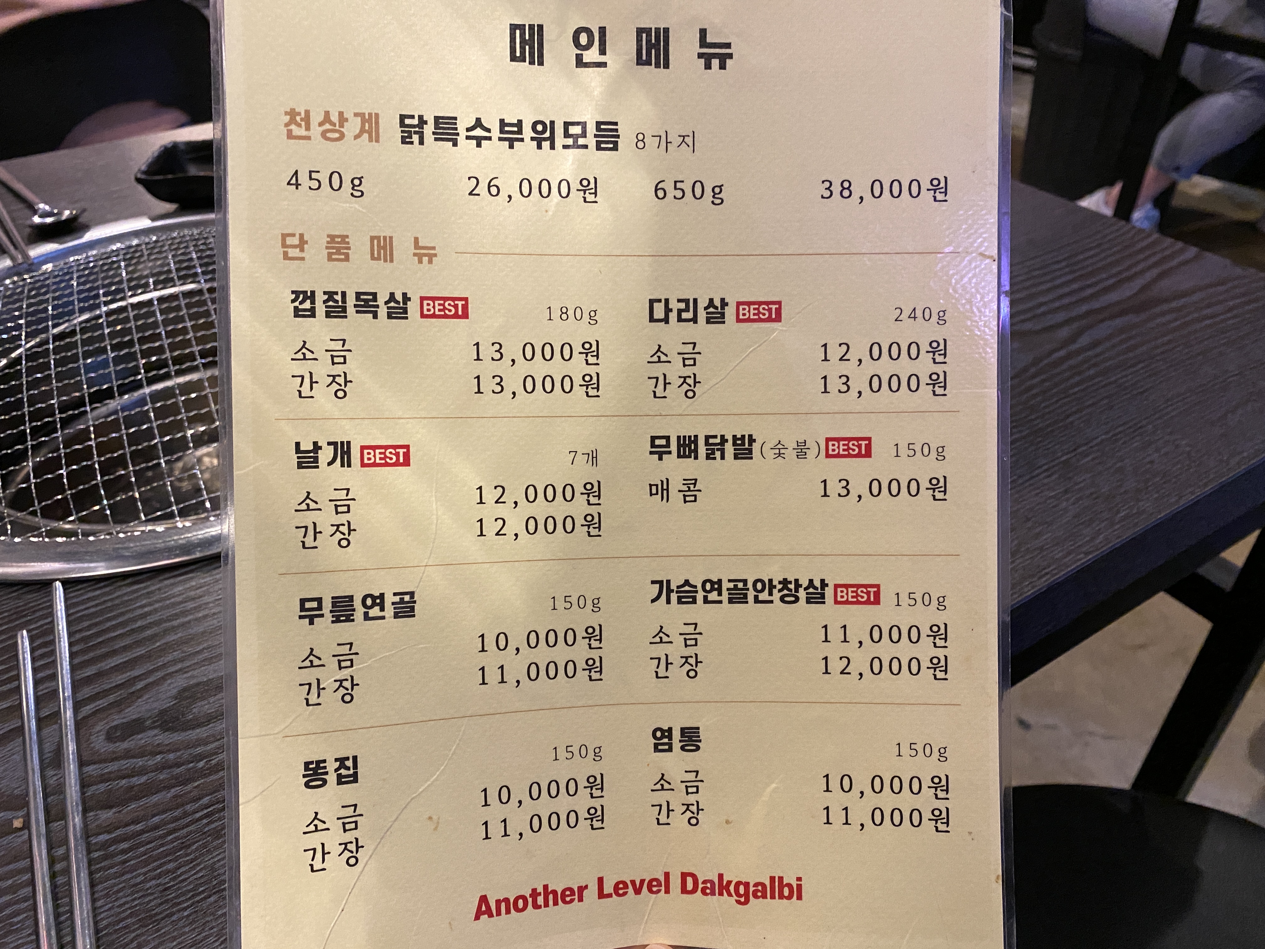 그래서 닭목살(간장)을 1인분 추가로 주문했다.