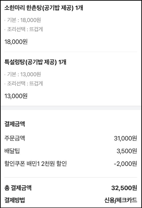 한촌탕과 특설렁탕을 주문했다.