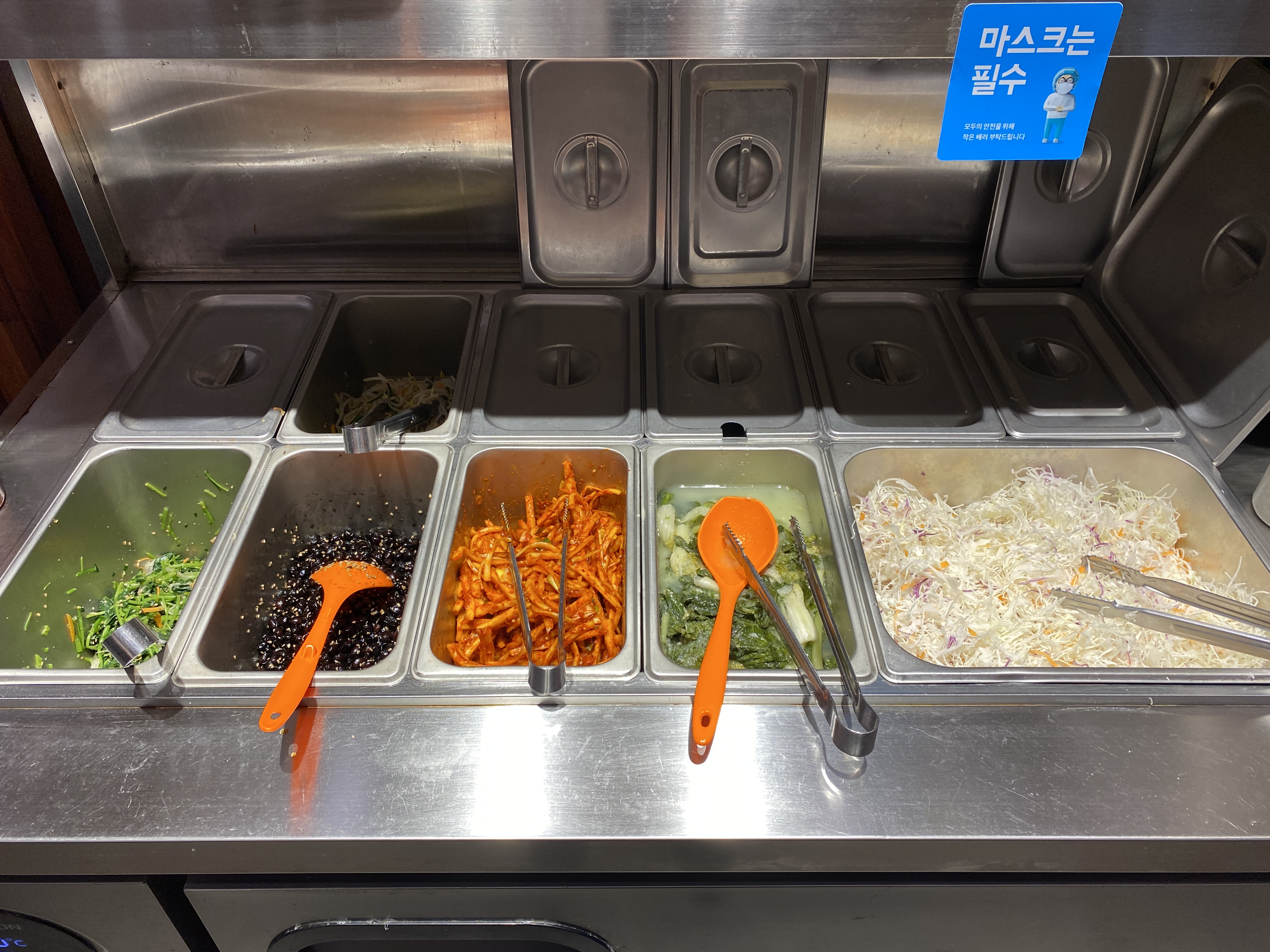 밑반찬들은 셀프바에서 가져다먹을 수 있고