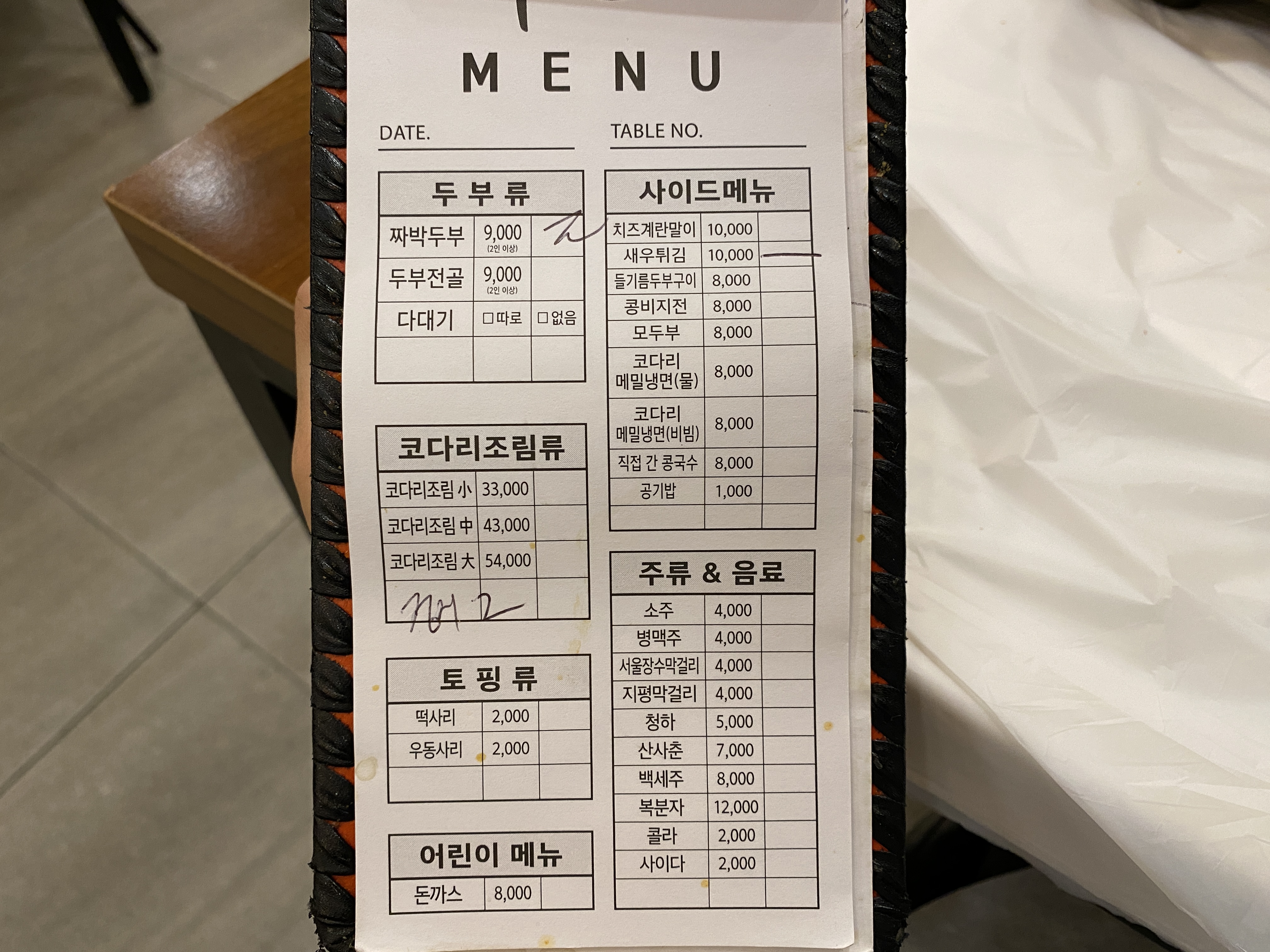 테이블에 있는 계산서랑 가격이 다른거보니