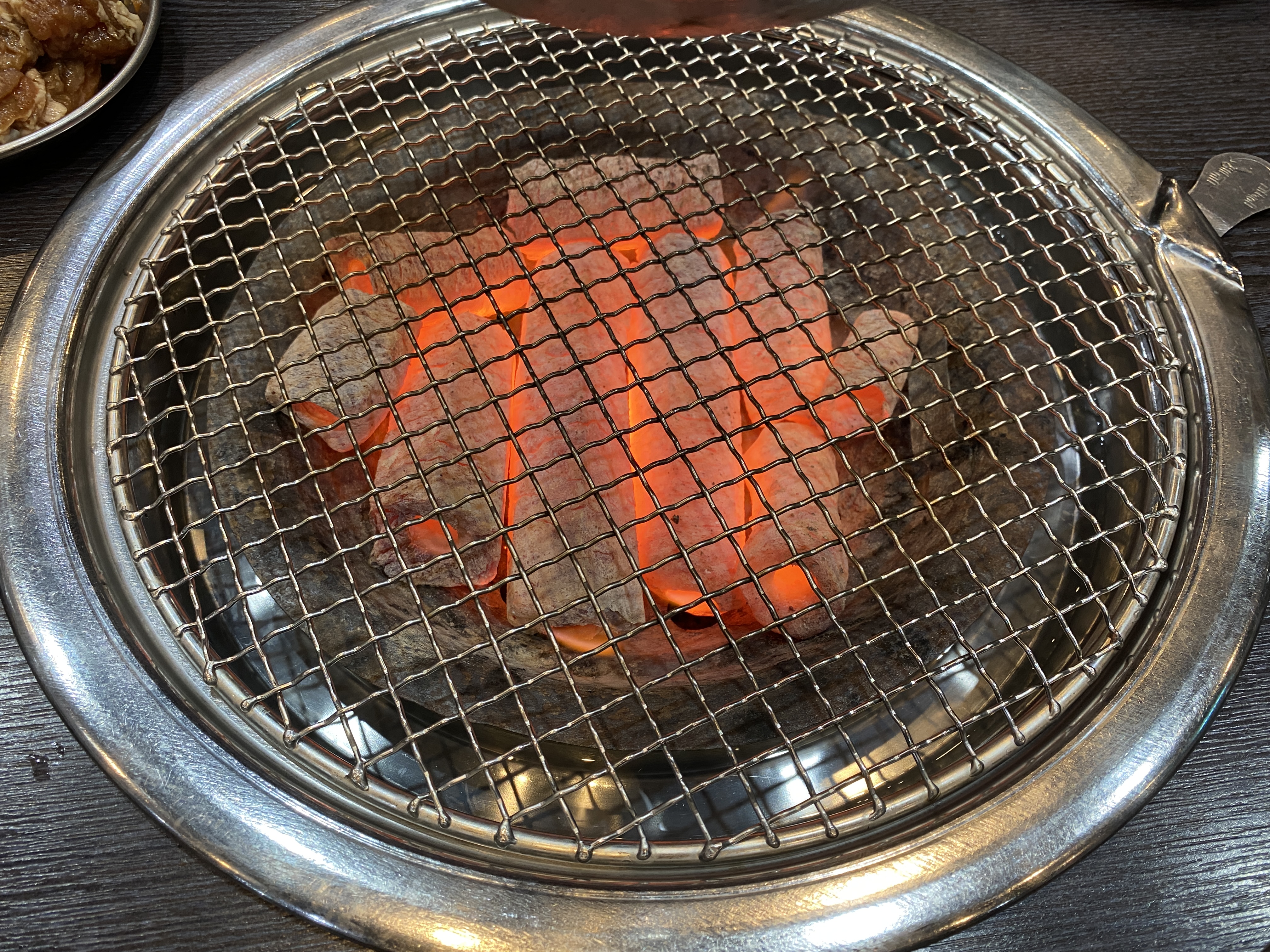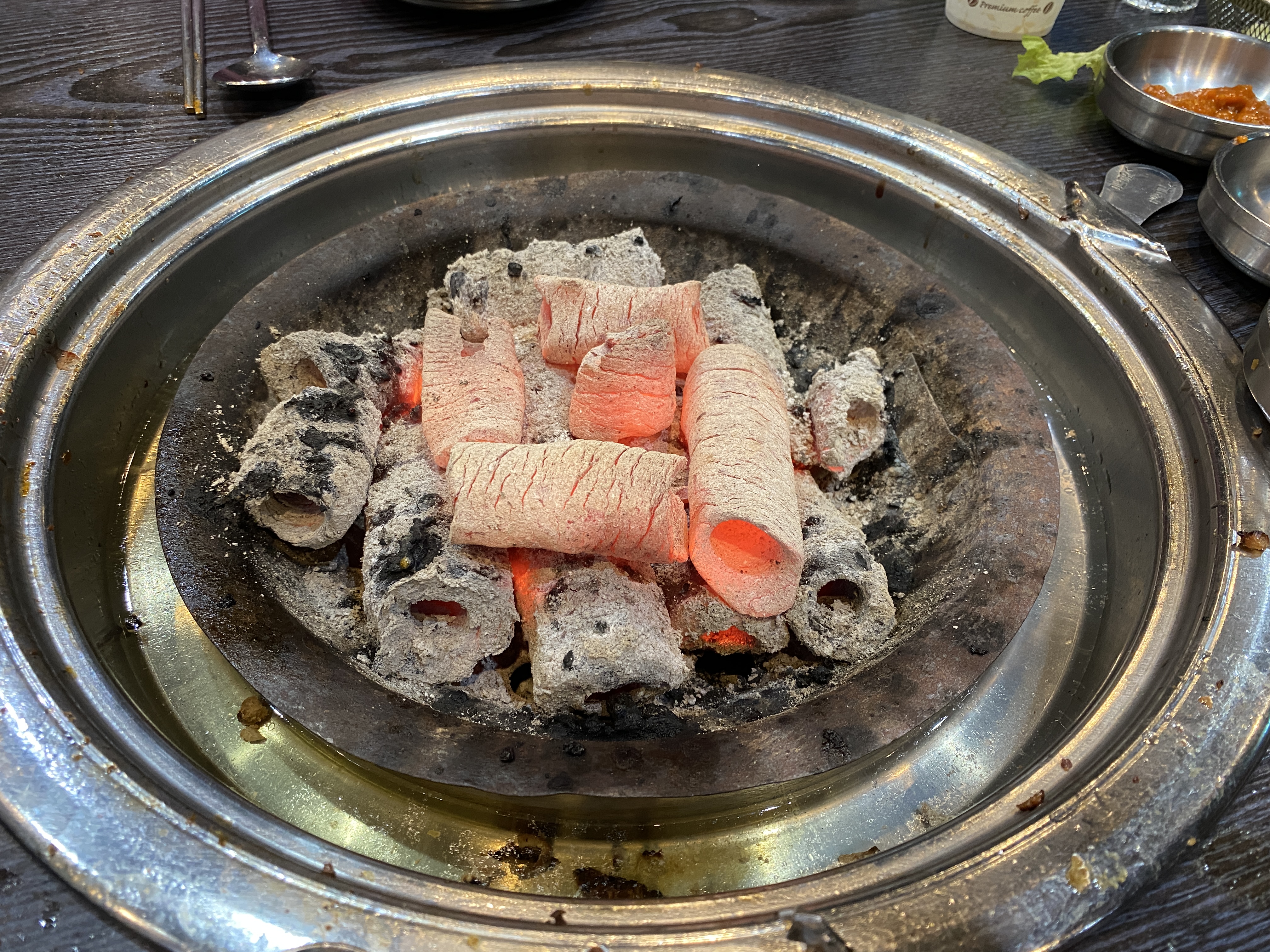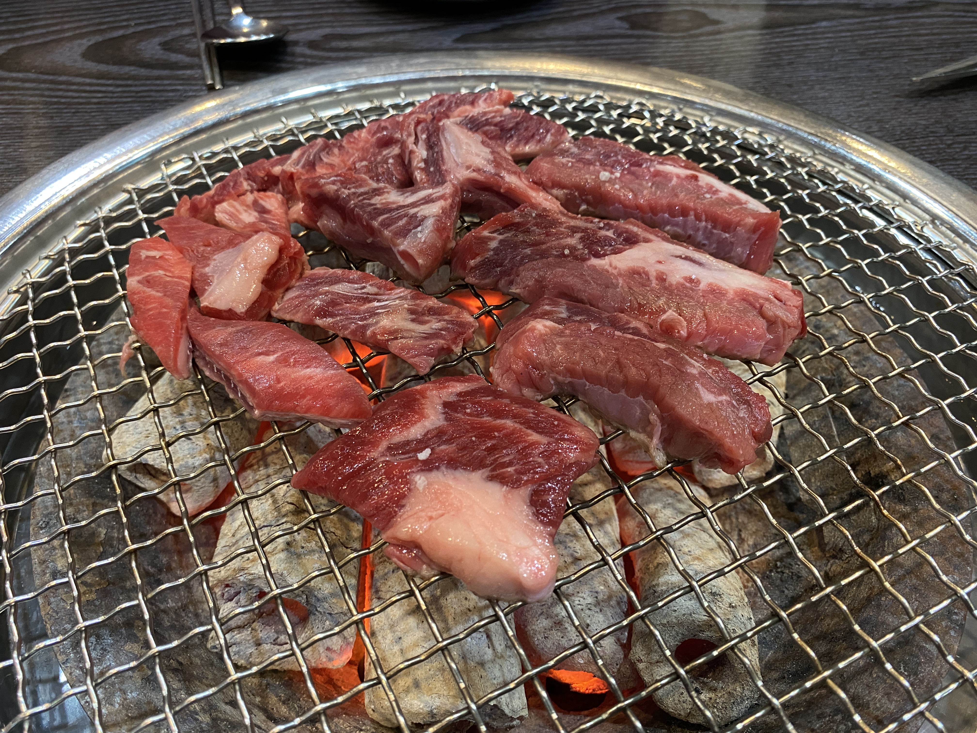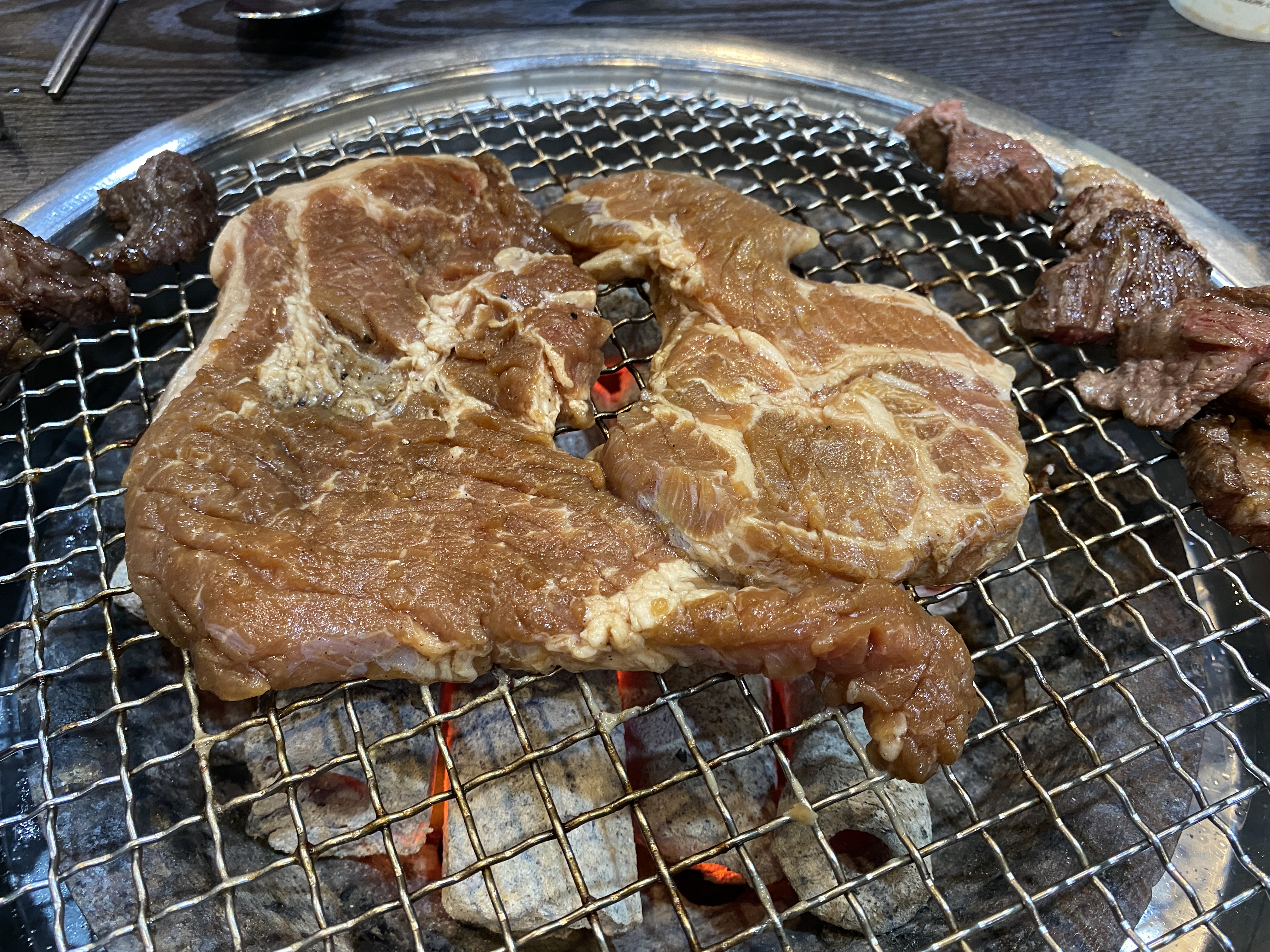 숯불이 추가된 직후라, 센불에 고기를 구우면