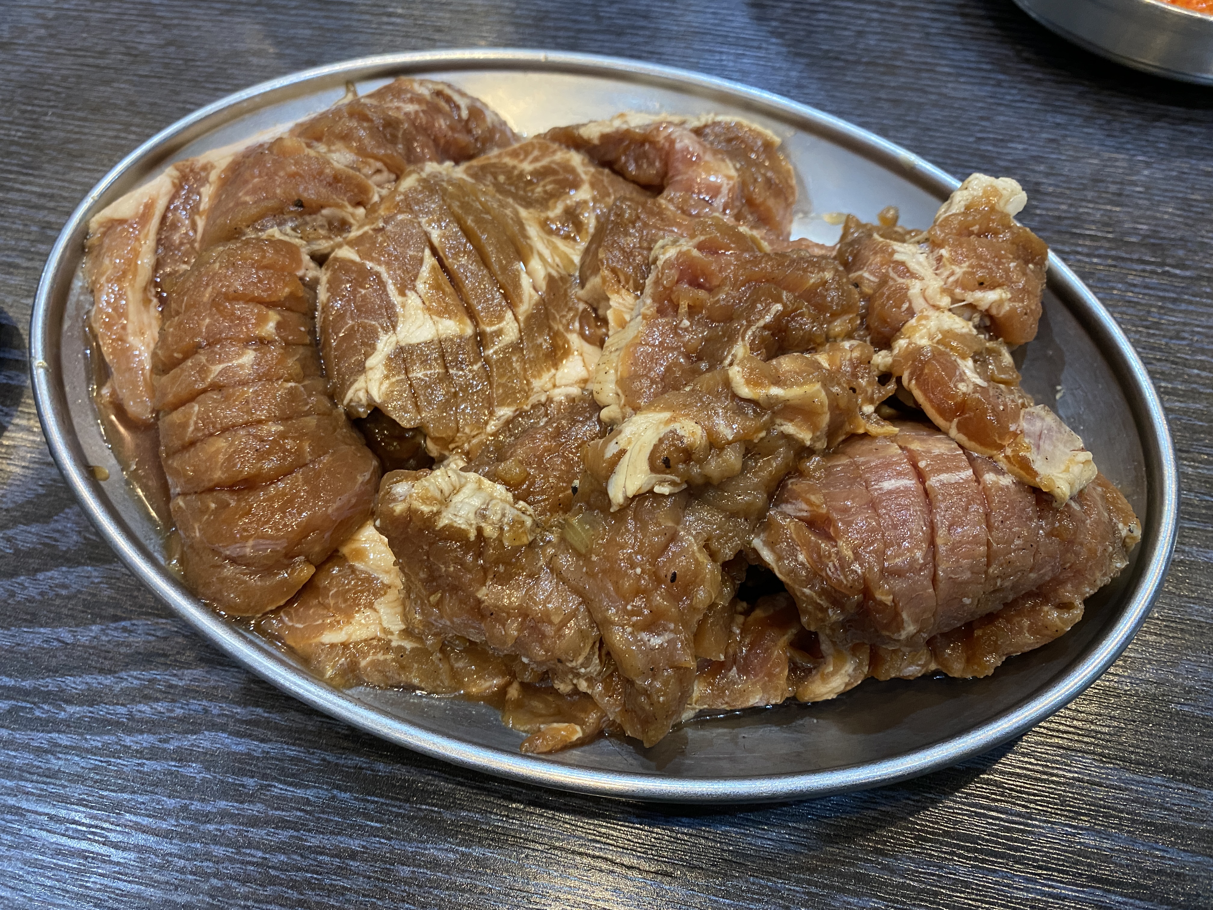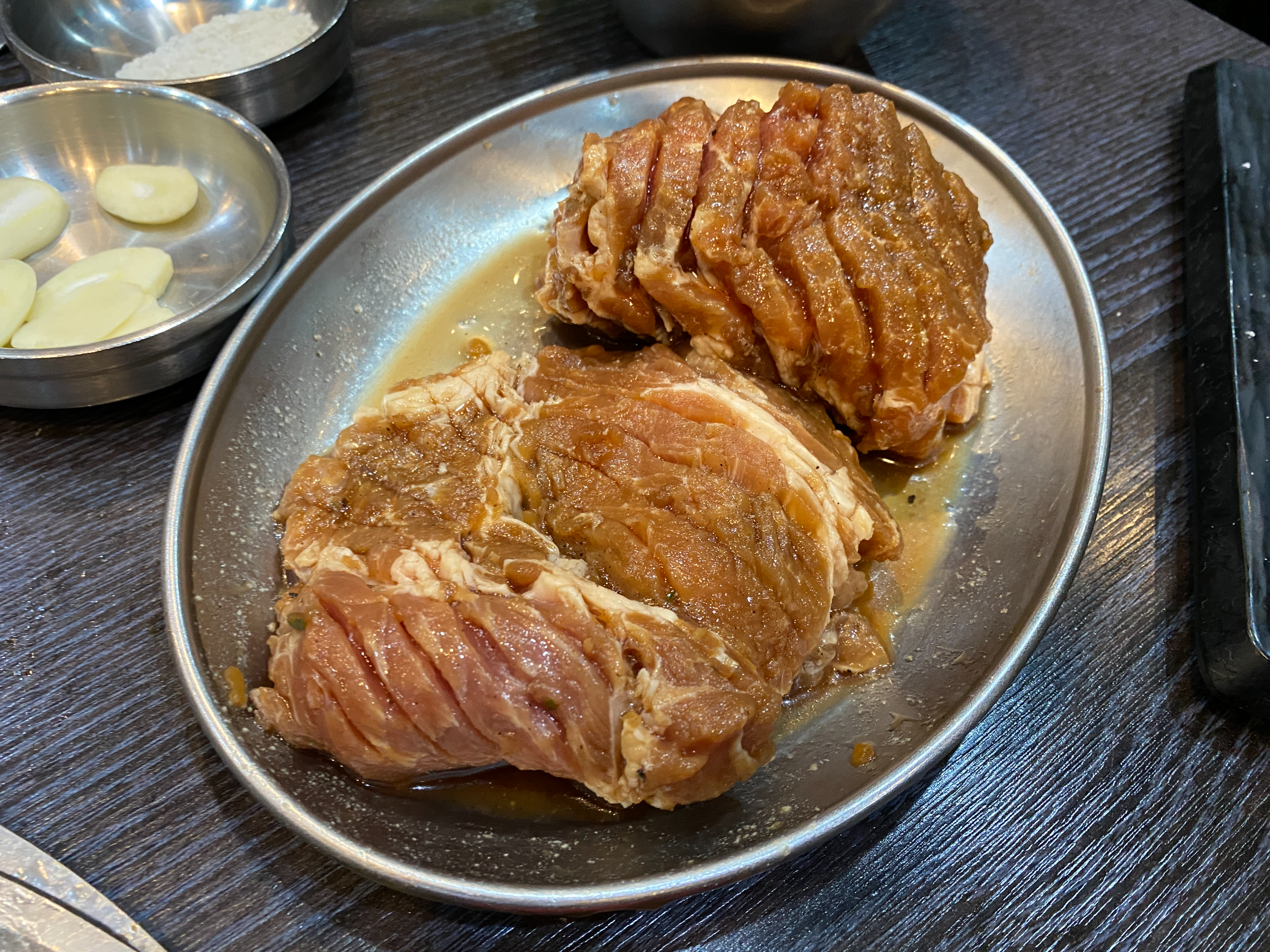 돼지고기(항정, 삼겹살)을 아래 가격에 먹을 수 있는데