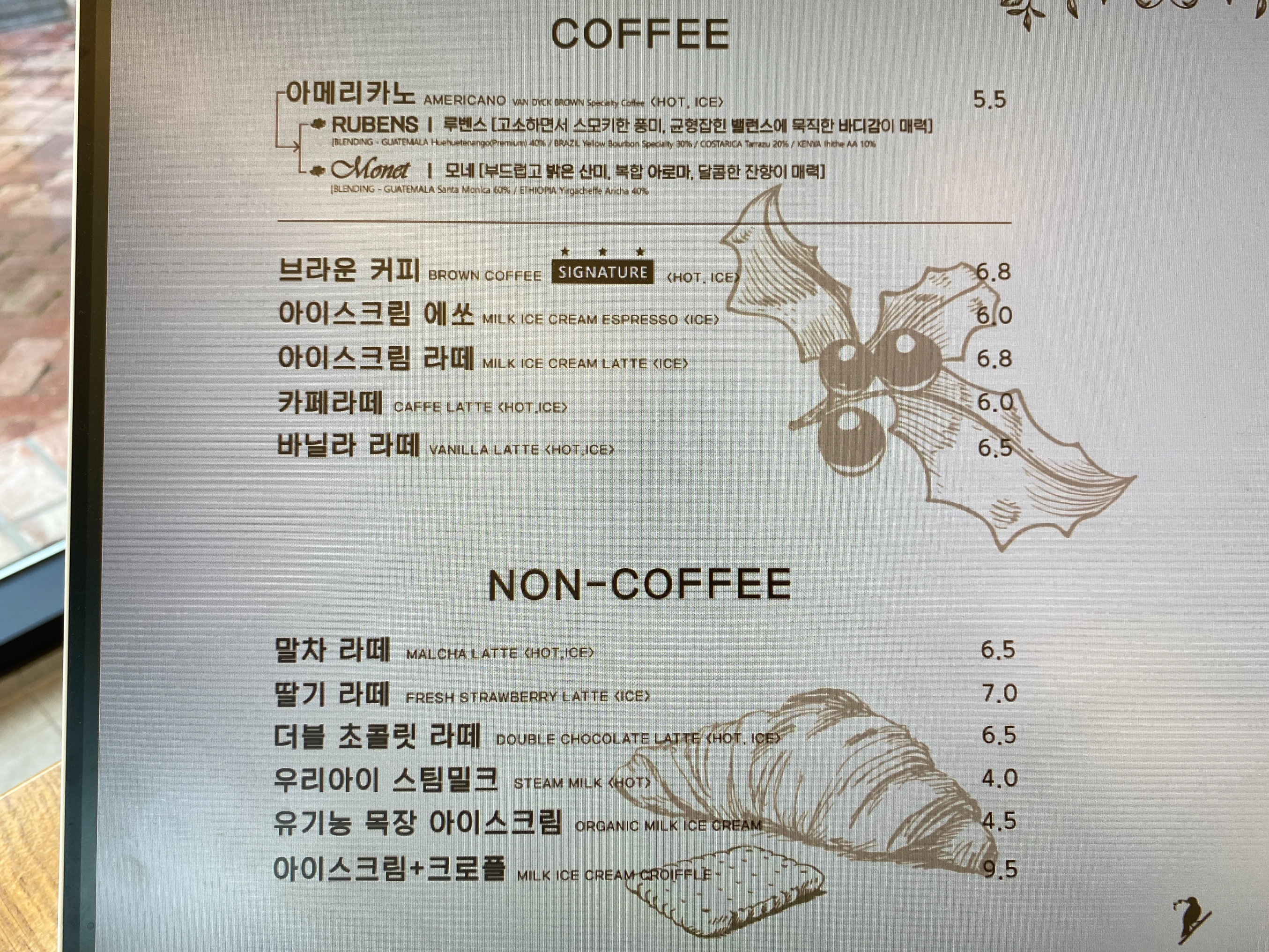 아이스라떼(6.8)와 뜨아(5.5)이다.