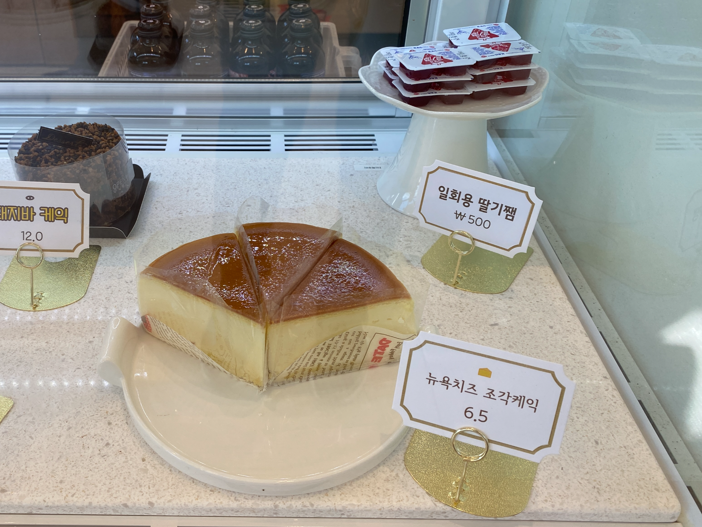 일회용 딸기잼(0.5), 뉴욕치즈 조각케익(6.5)