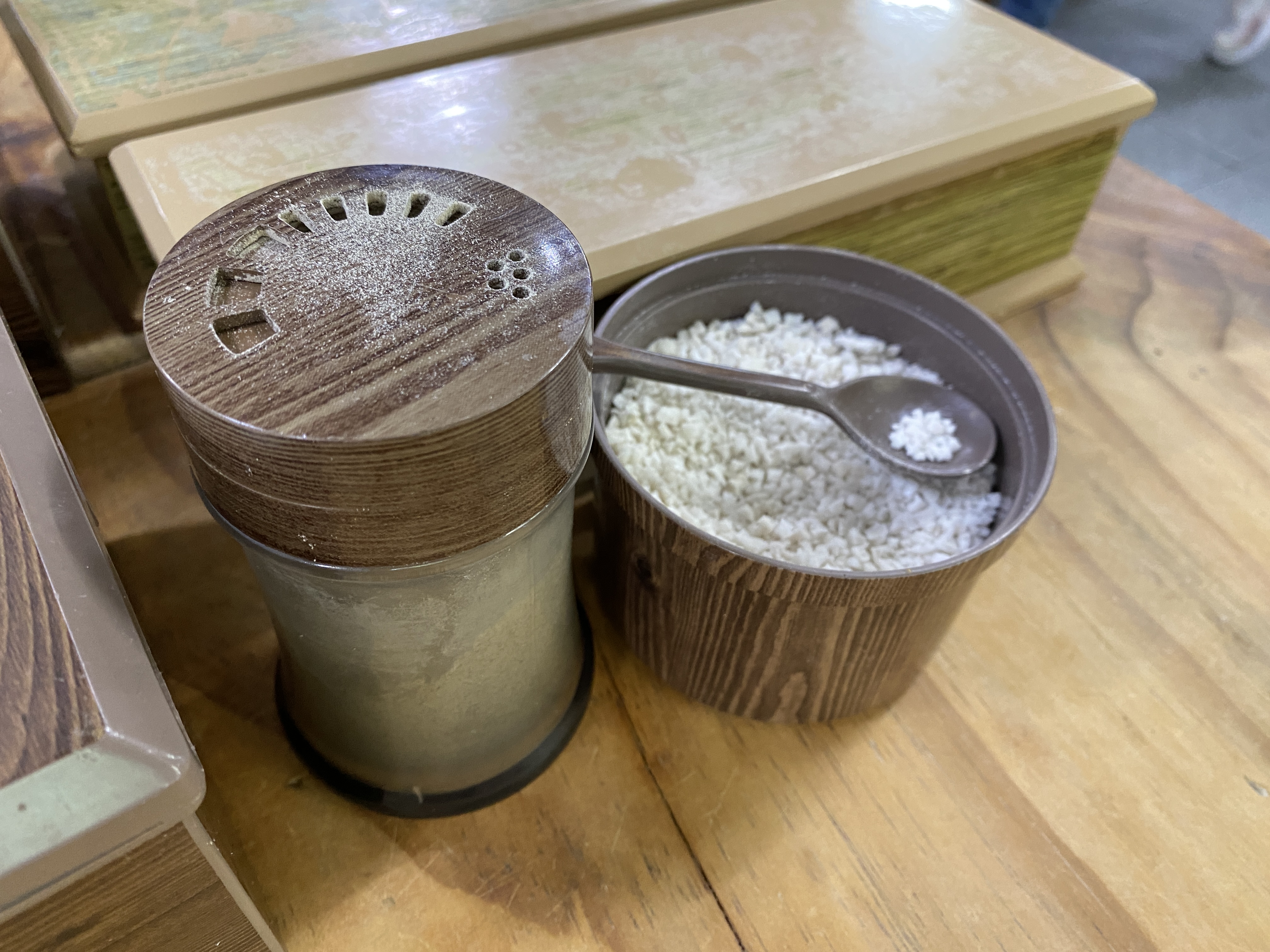 테이블 한켠에 후추랑 소금도 놓여있다.