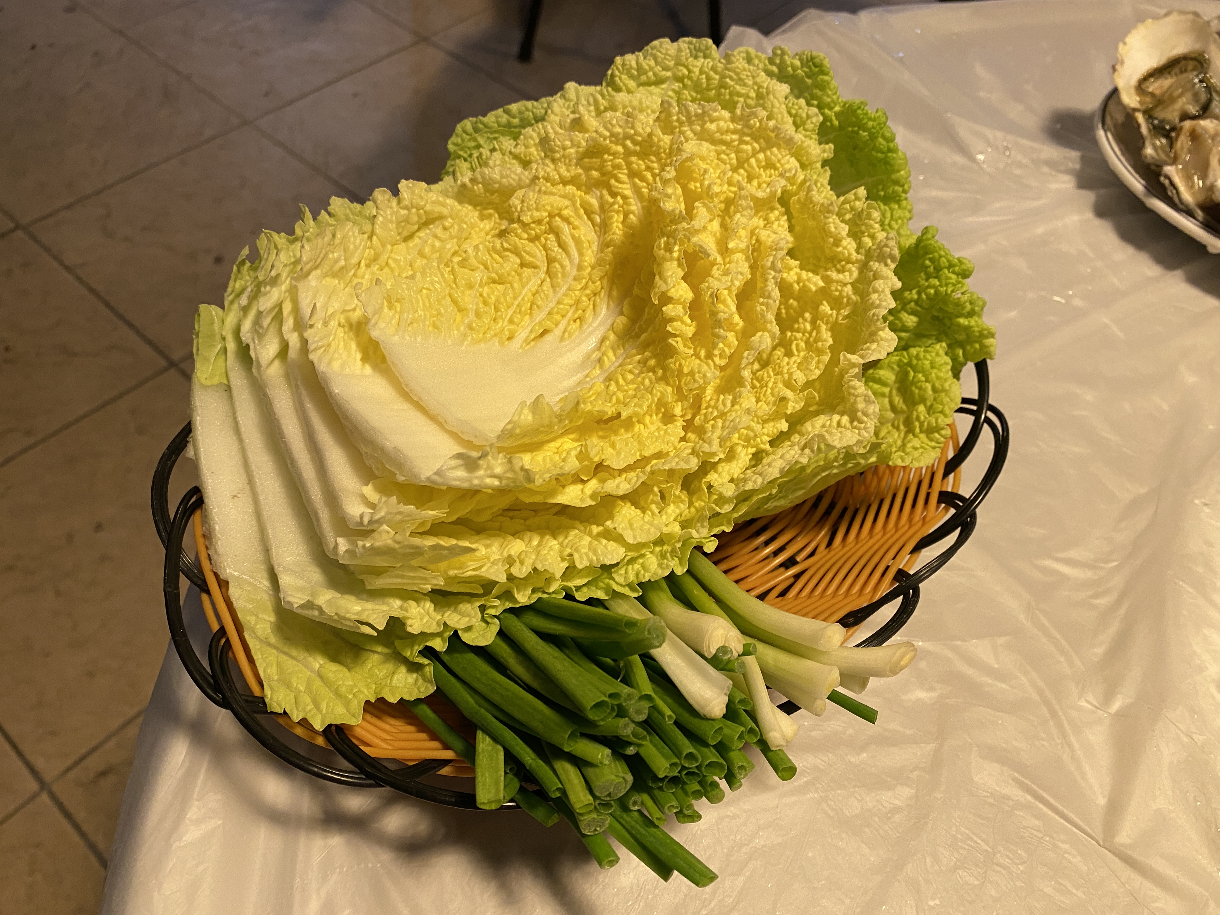 쌈채소는 배추와 쪽파가 나온다.