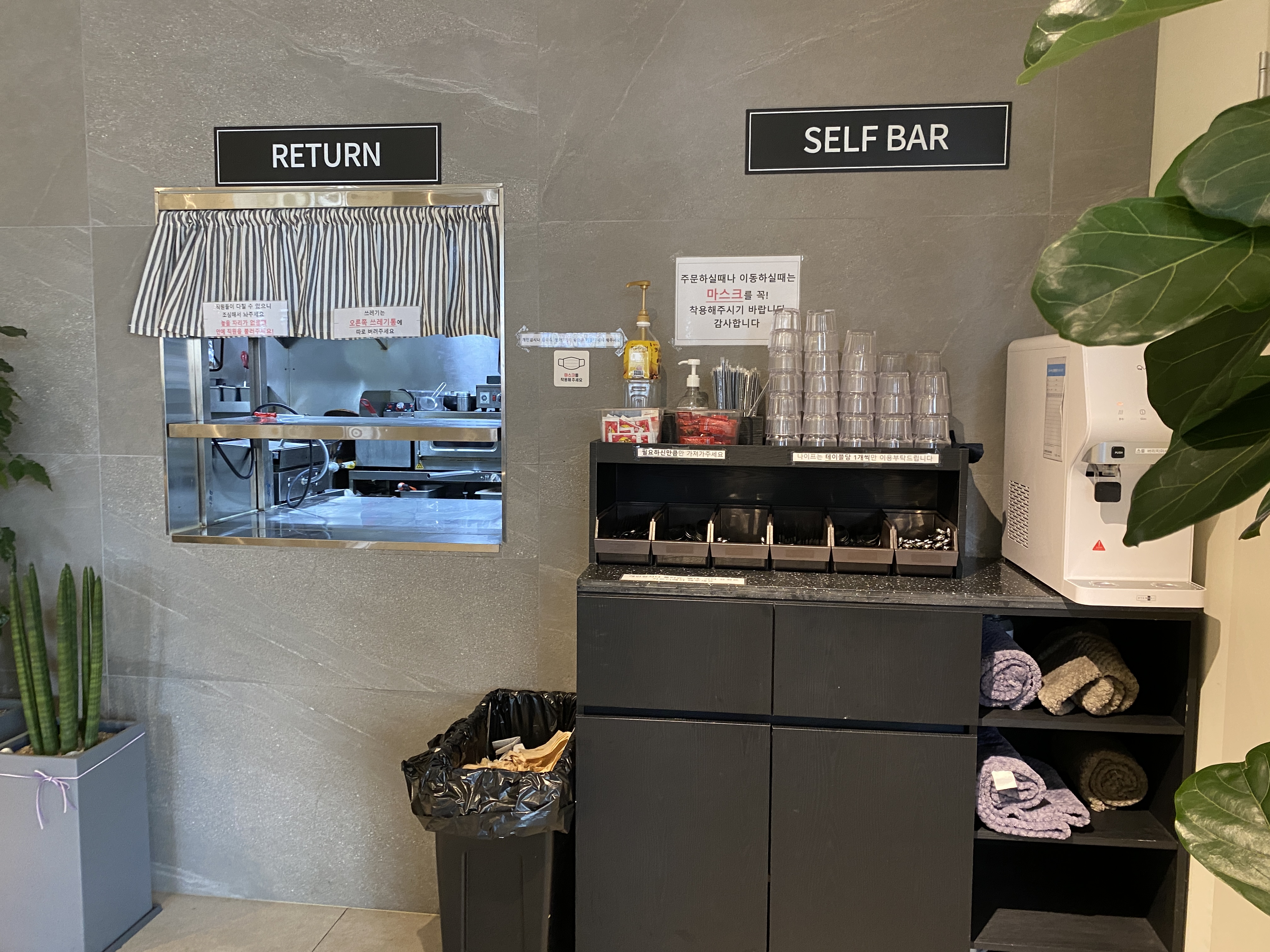 (개인접시나 물티슈는 카운터에 요청해야 함)