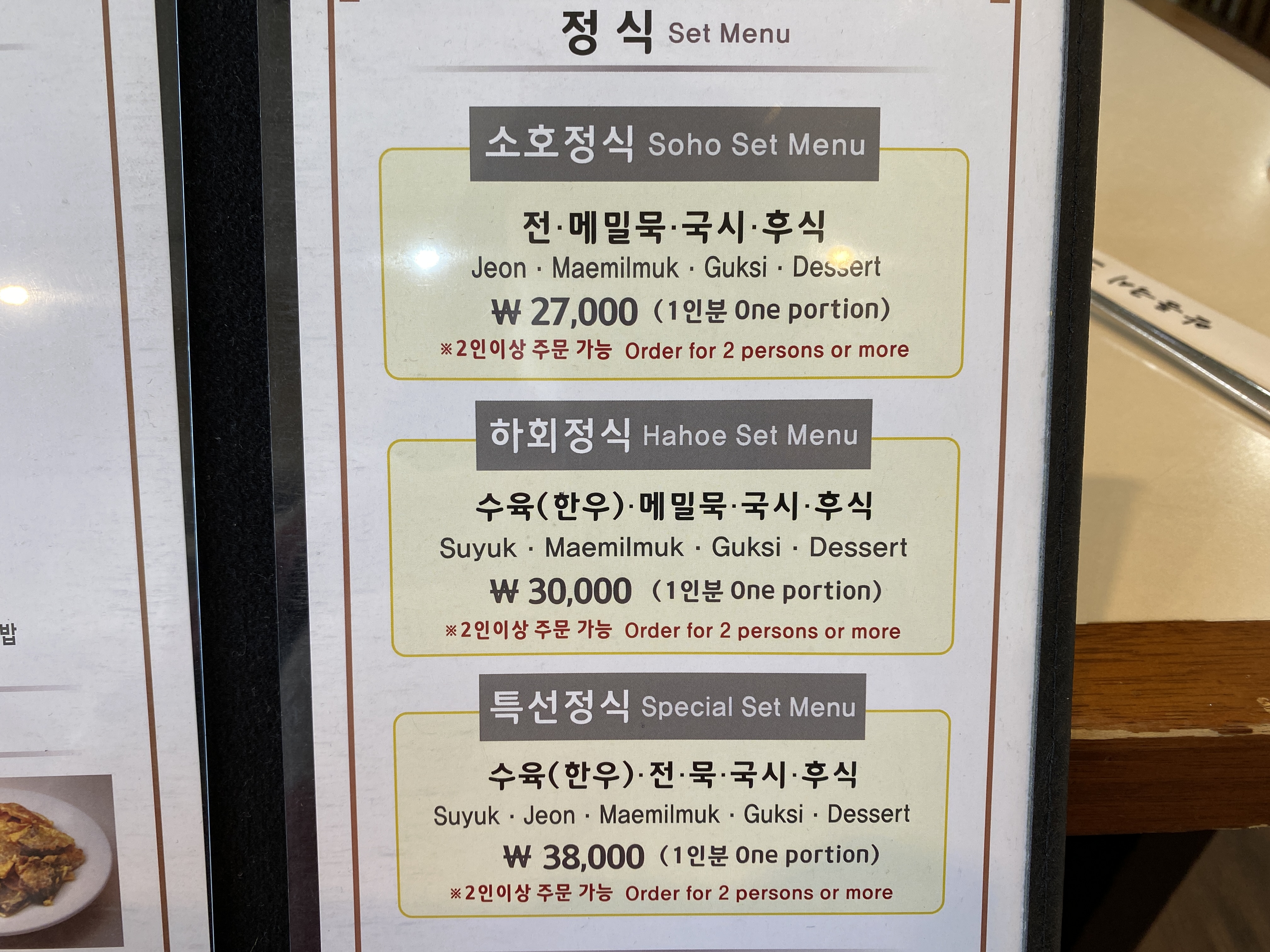 정식은 2인 이상 주문이 가능하고