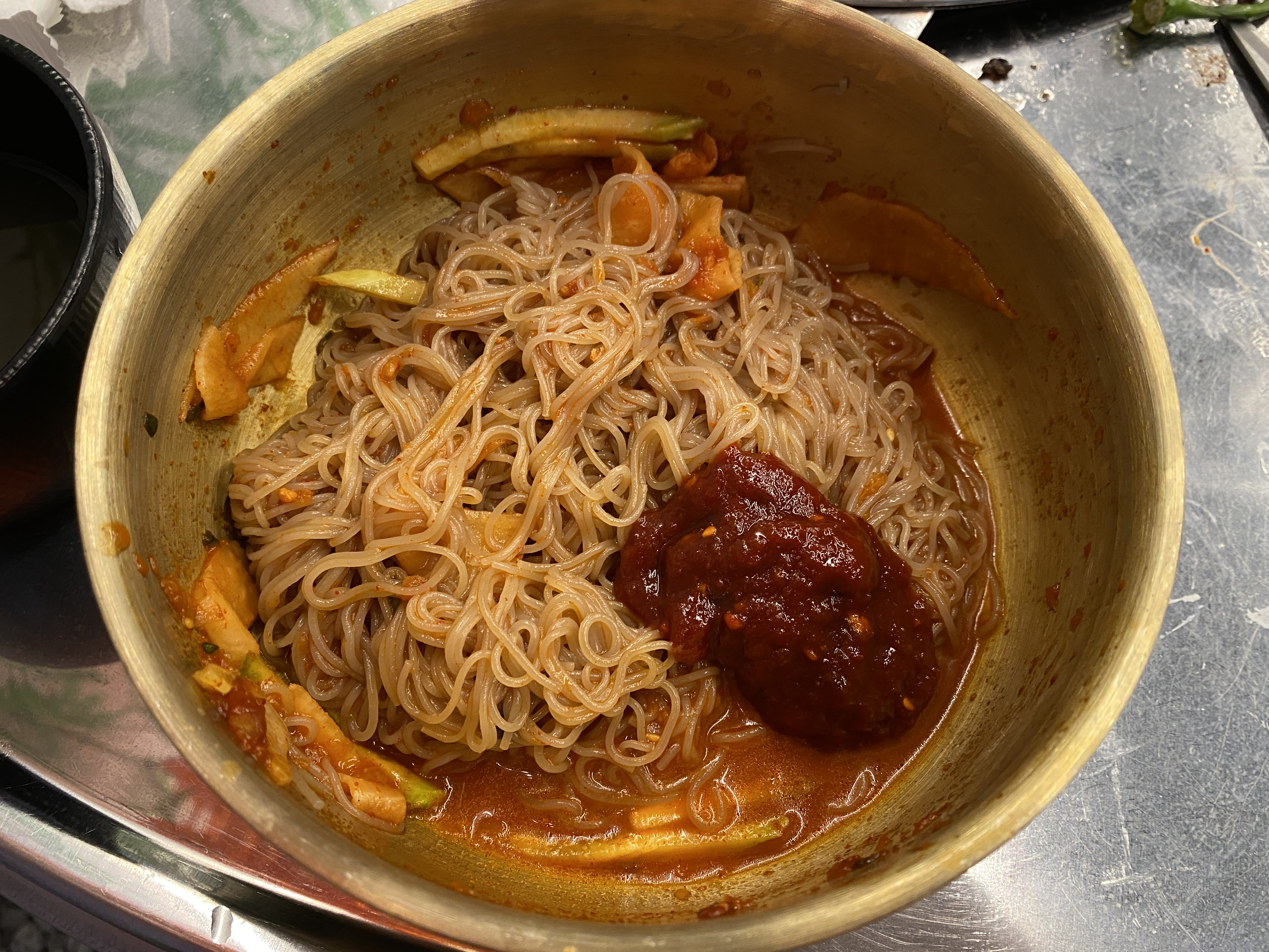 양념장을 다 넣고 비볐더니 조금 짰다.
