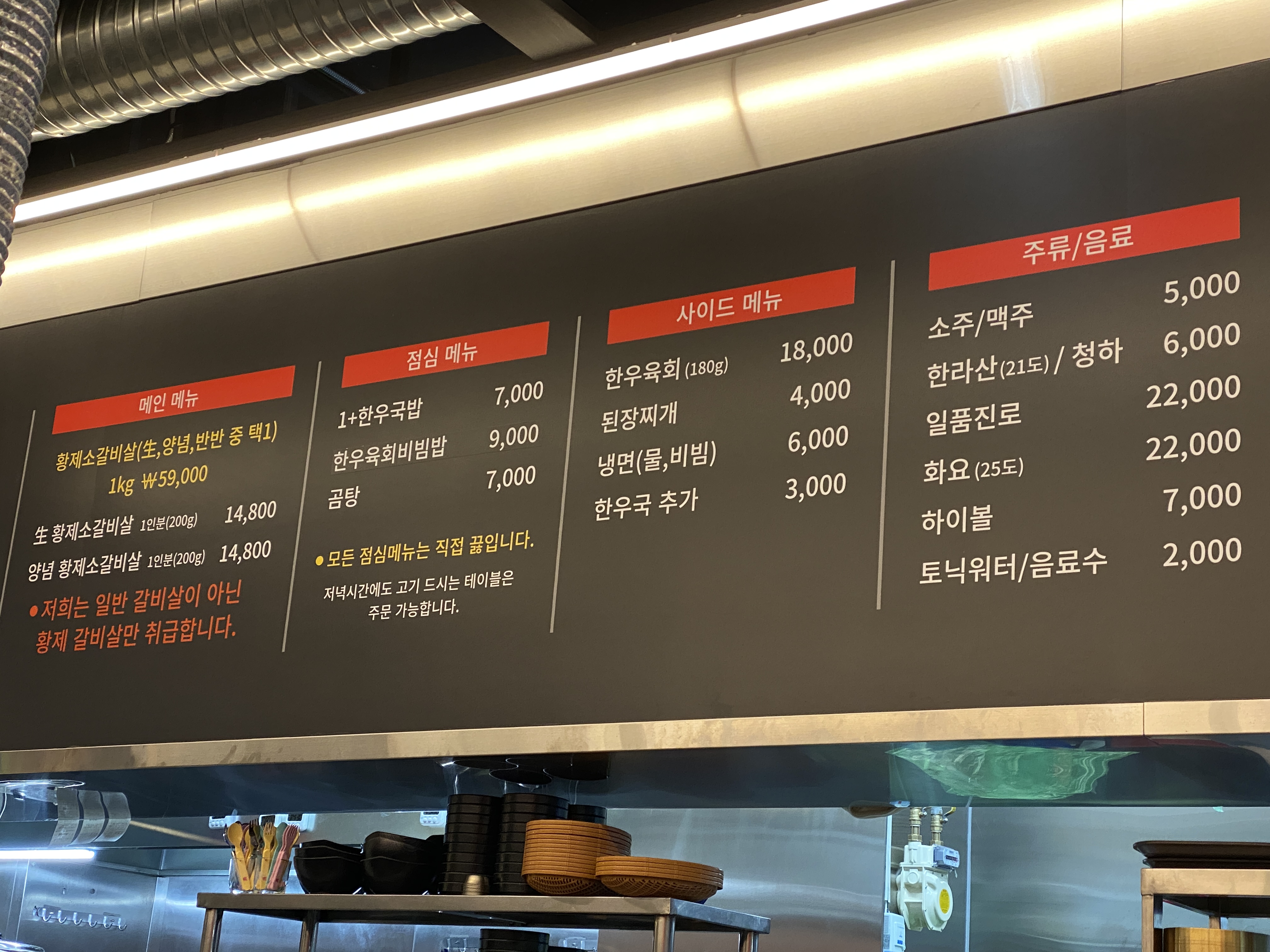 우리는 황제소갈비살 1kg(반반)을 주문했다.