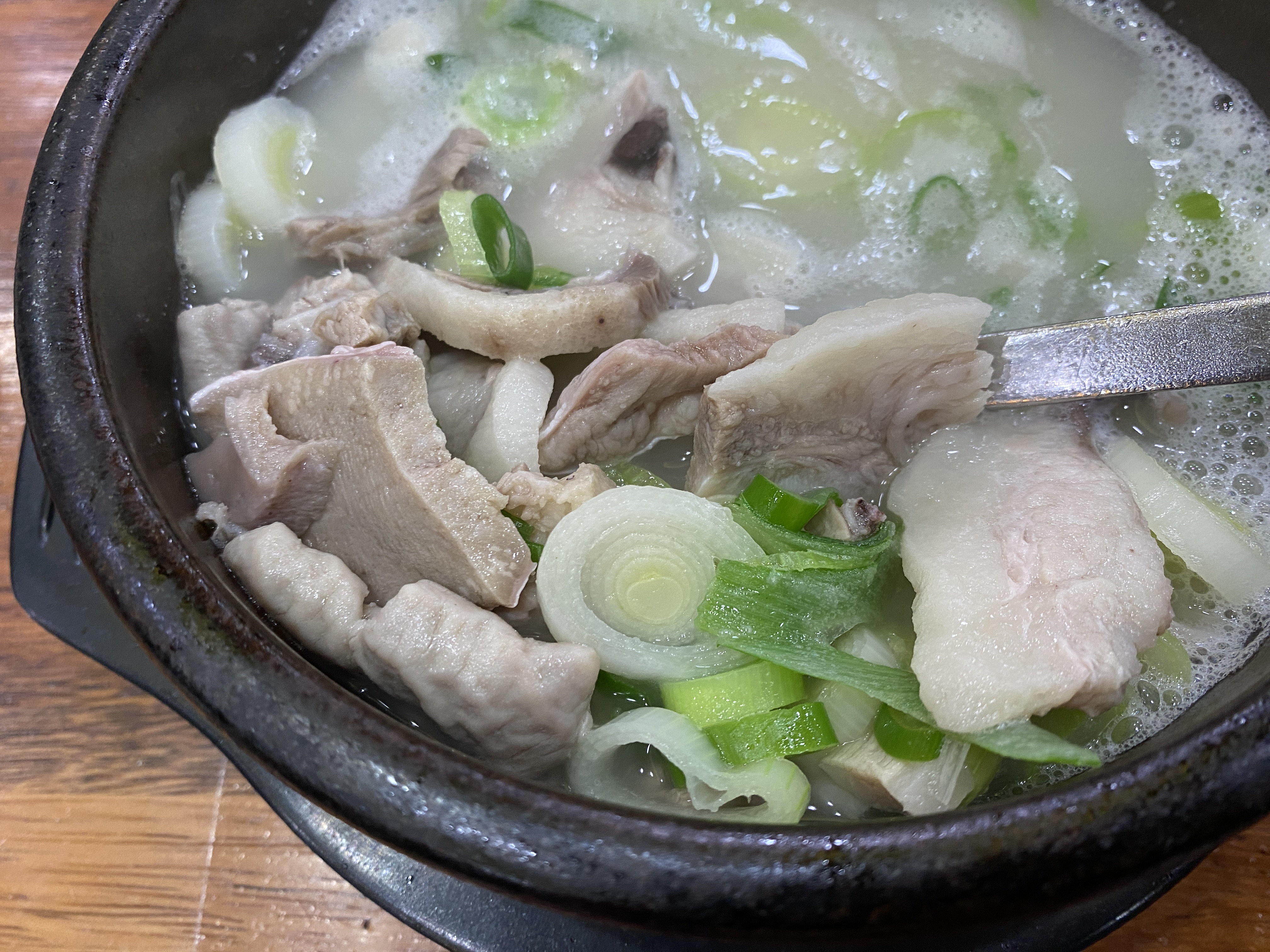 국물은 사골베이스 담백한 편이라