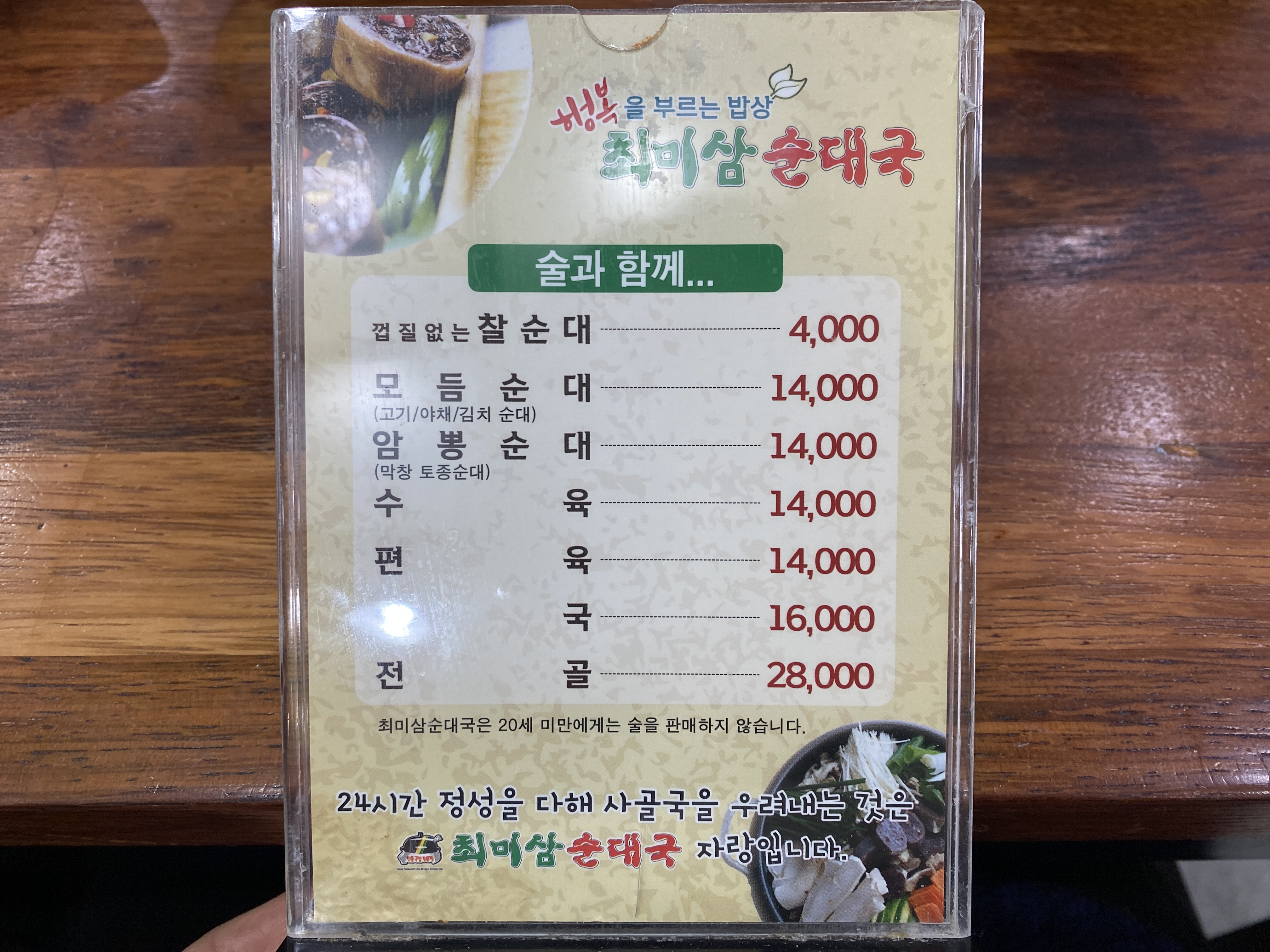 순대국을 주문하면