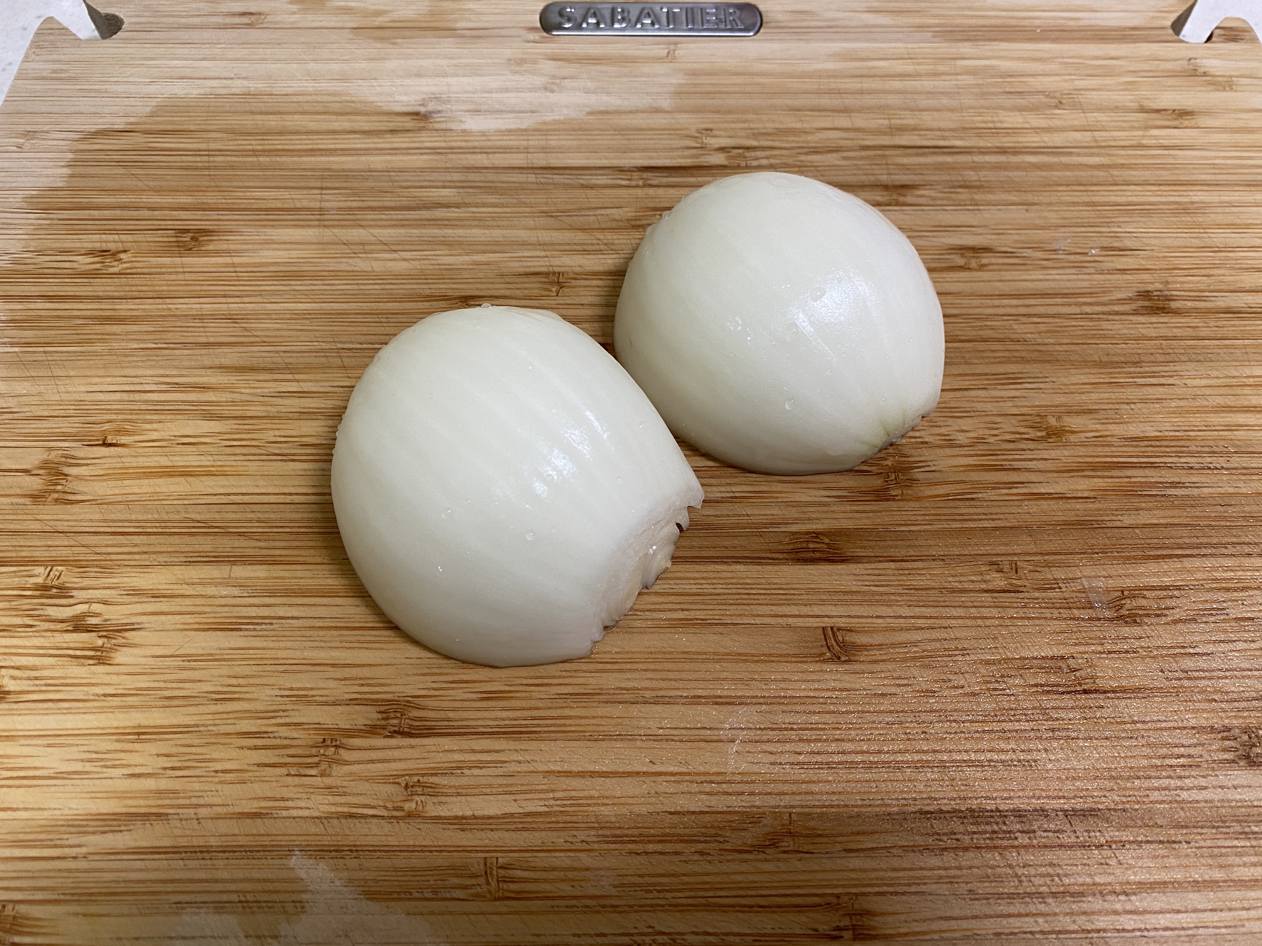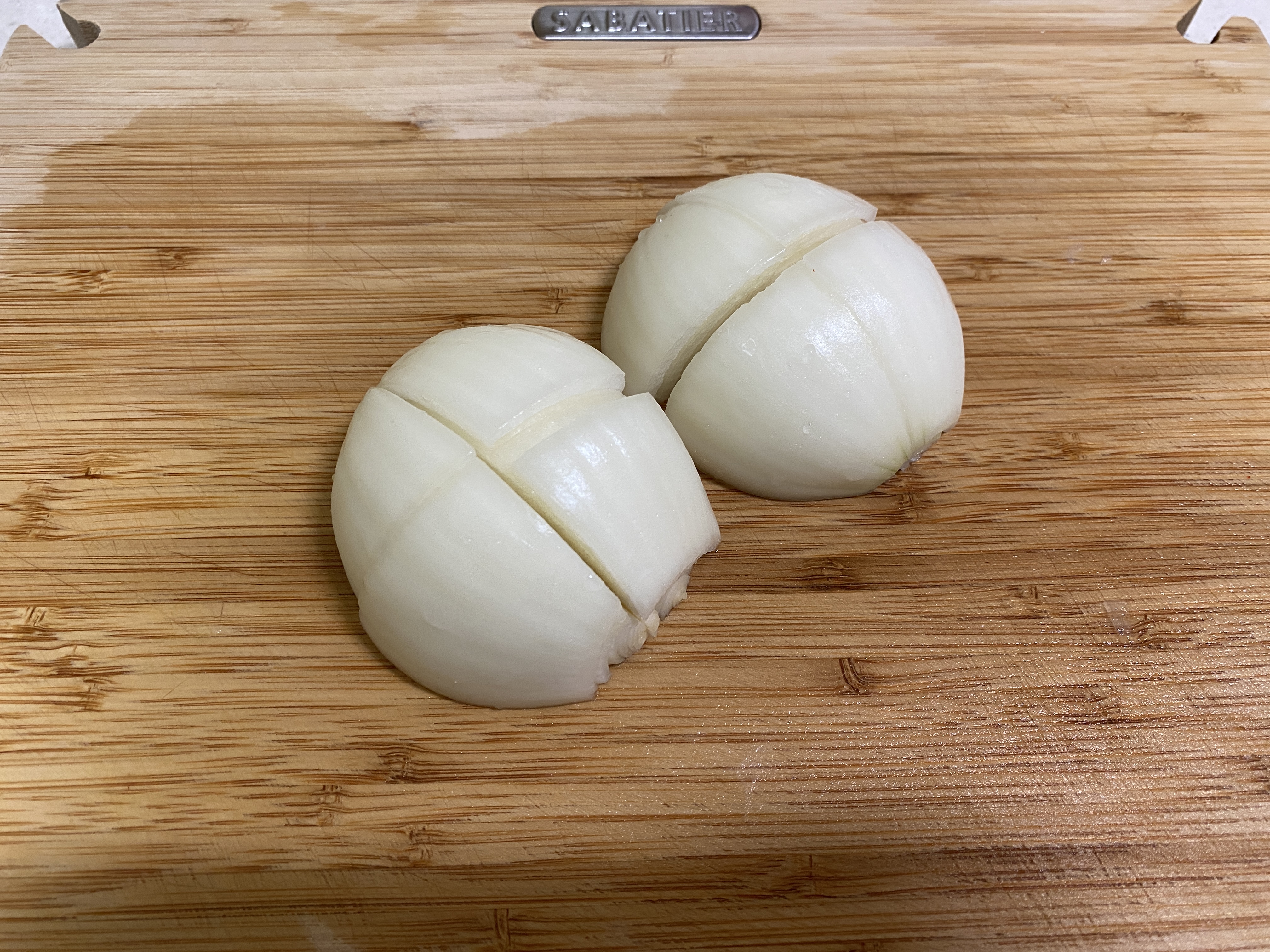 3. 양파는 반으로 갈라서 4등분 한다.