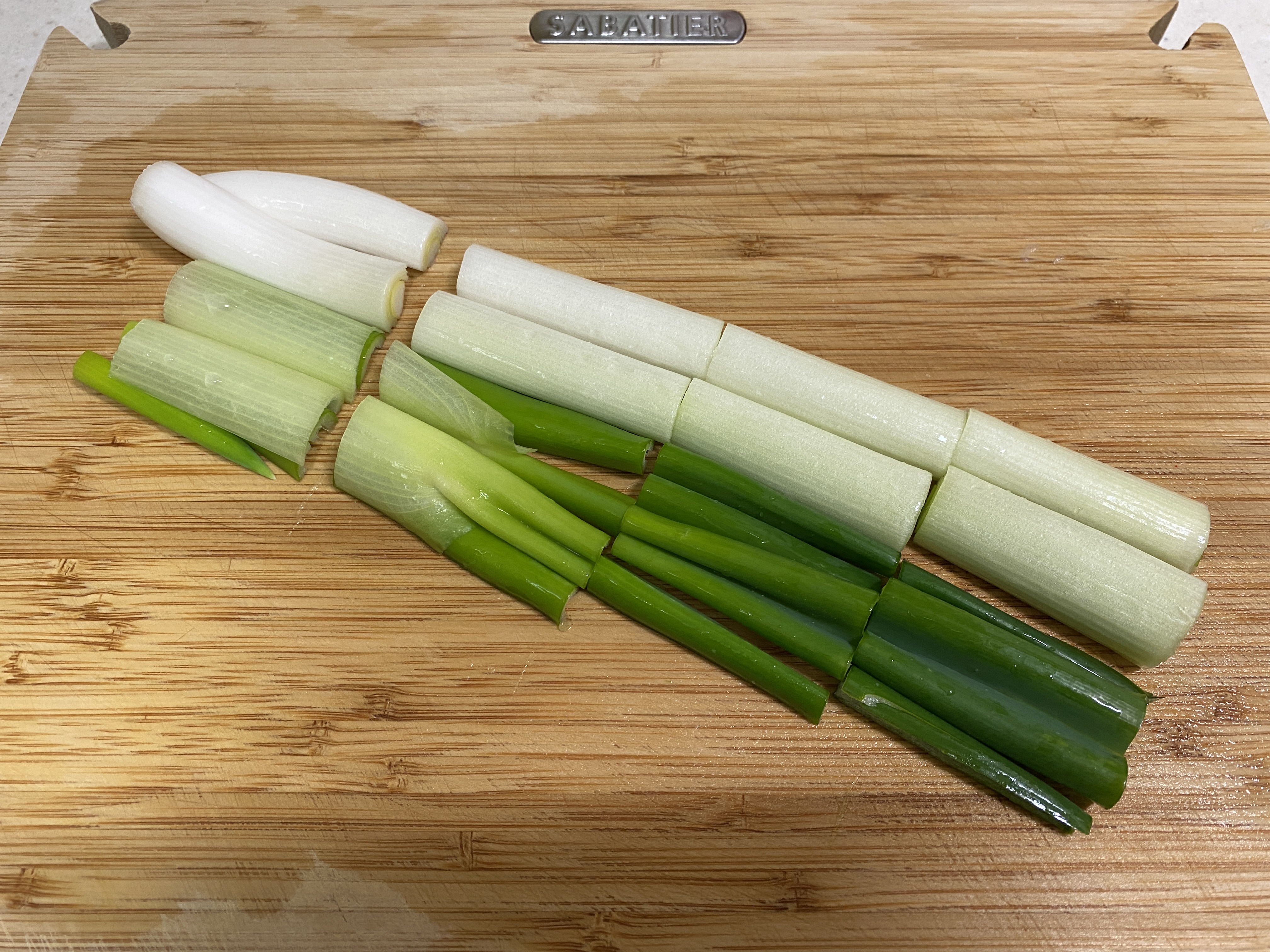 4. 대파는 반으로 갈라서 큼직큼직하게 썰어준다.
