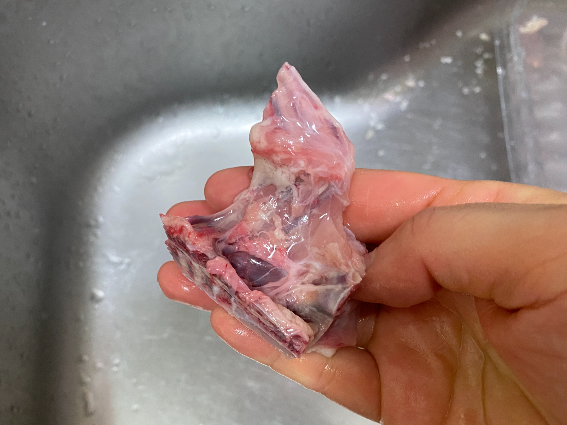 ② 하나하나씩 닭의 껍질과 살, 뼈의 단면을