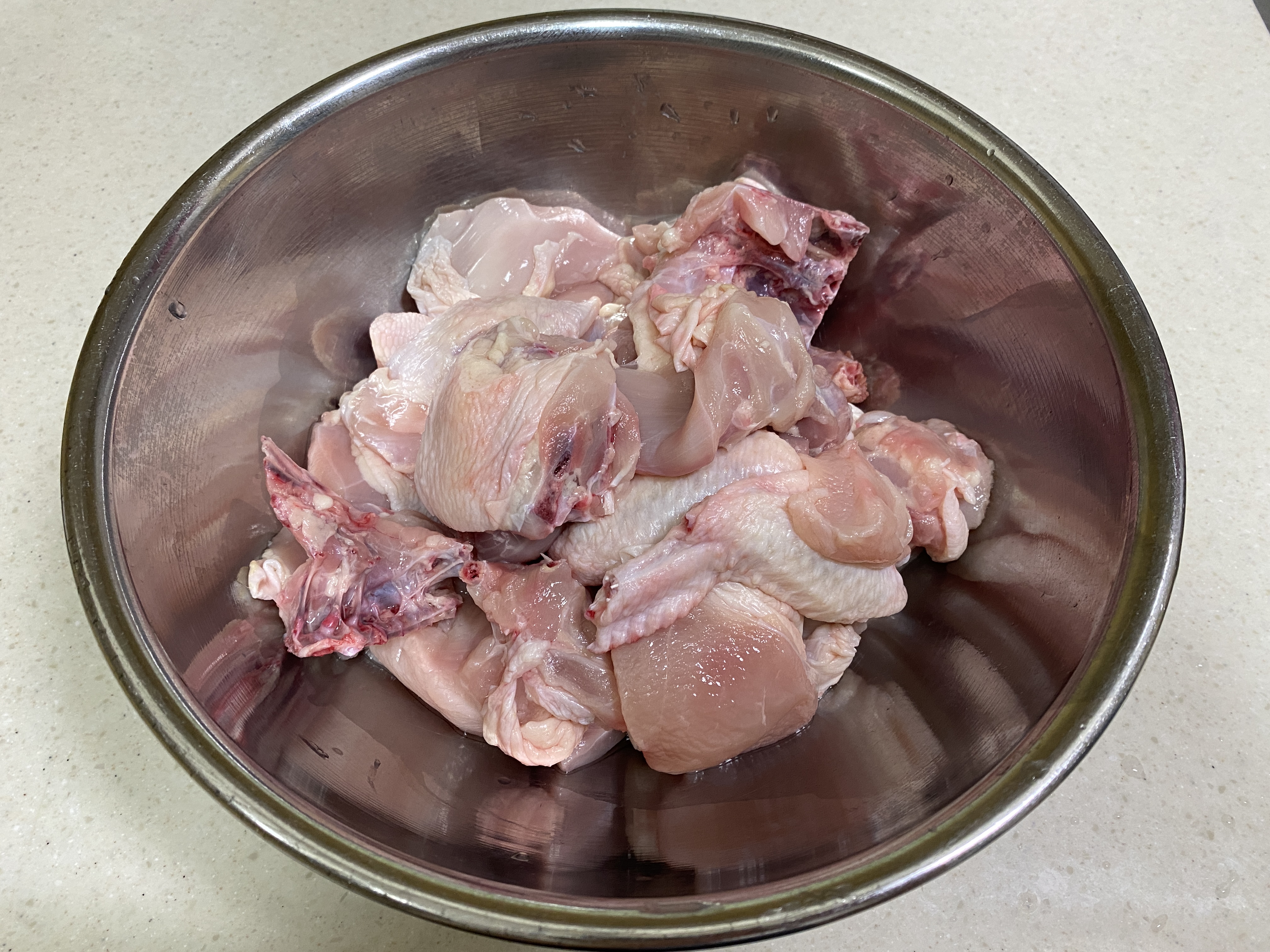 ① 닭을 흐르는 물에 담가놓기. (+핏물 제거)