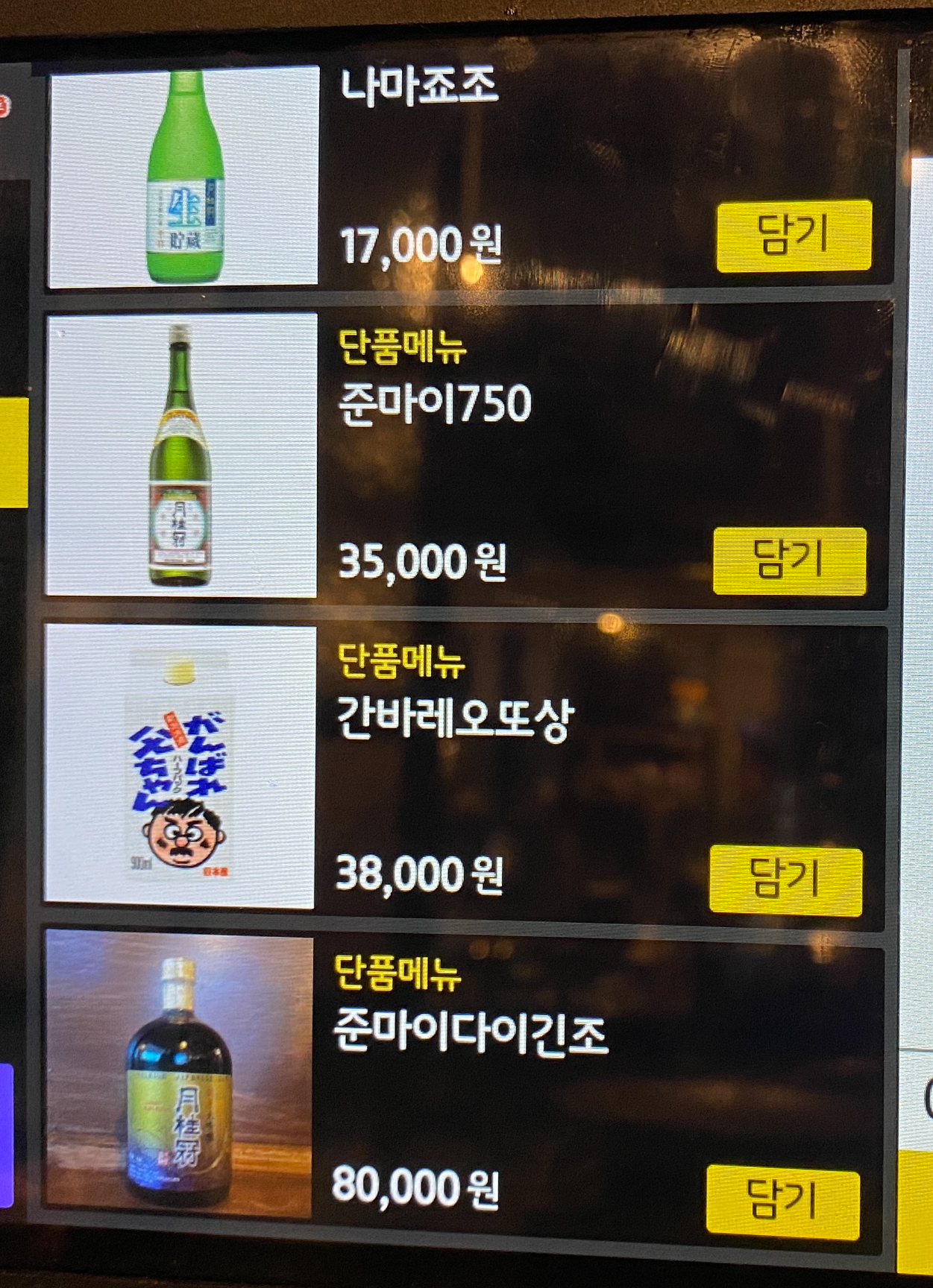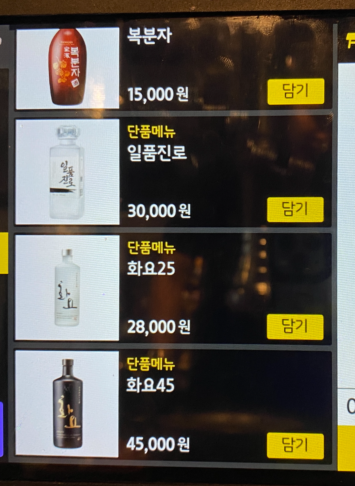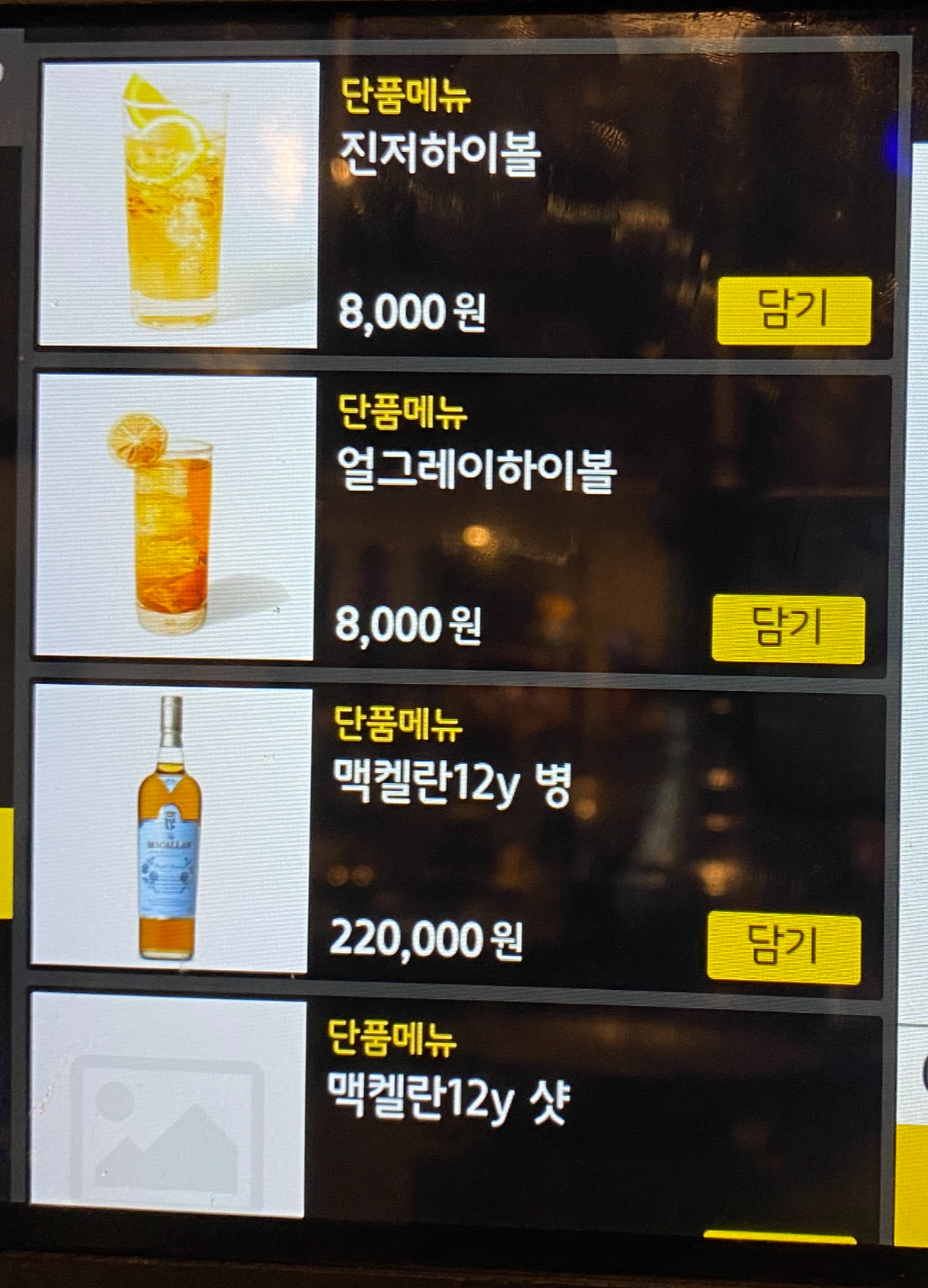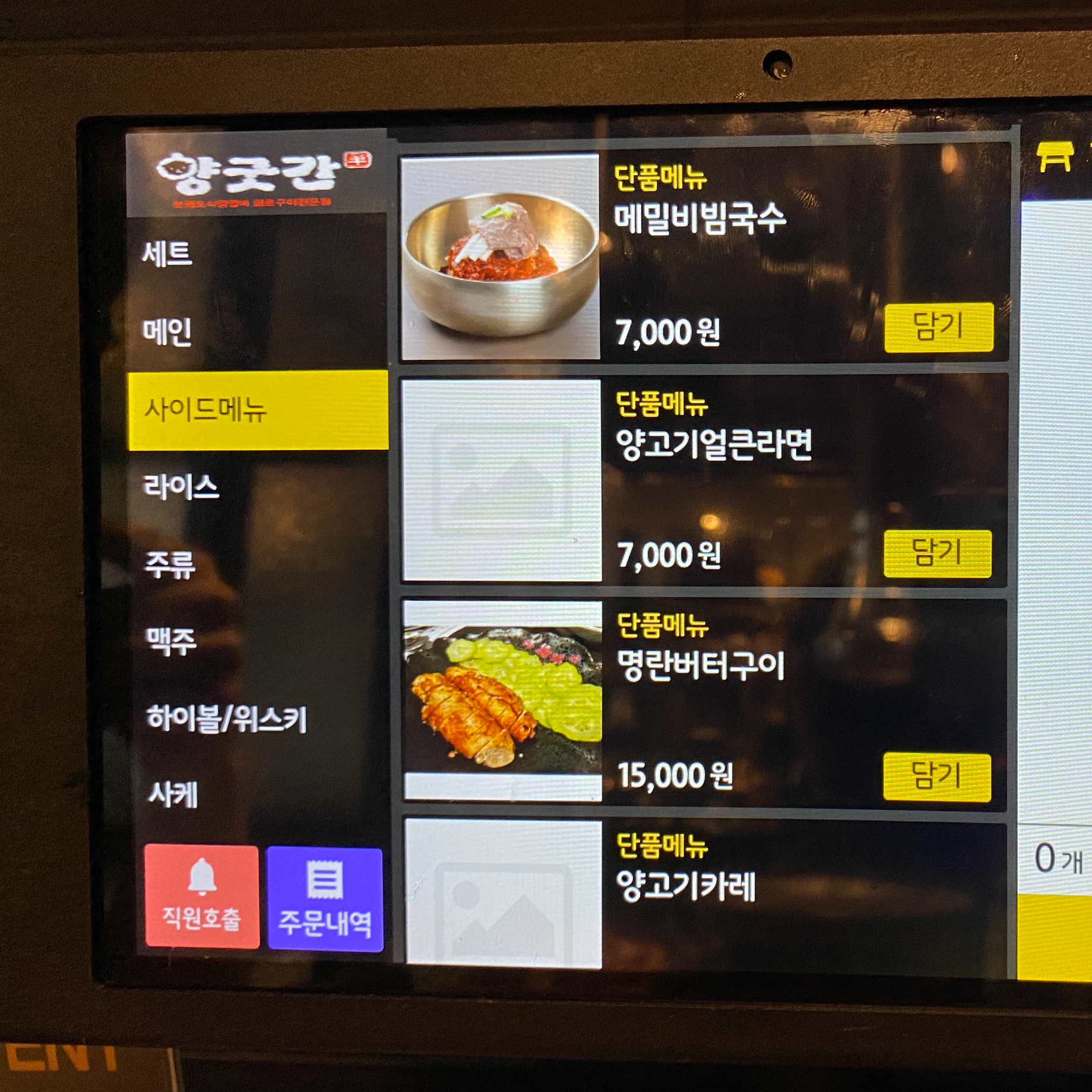 오랜만에 왔더니 태블릿 메뉴판이 생겼다.