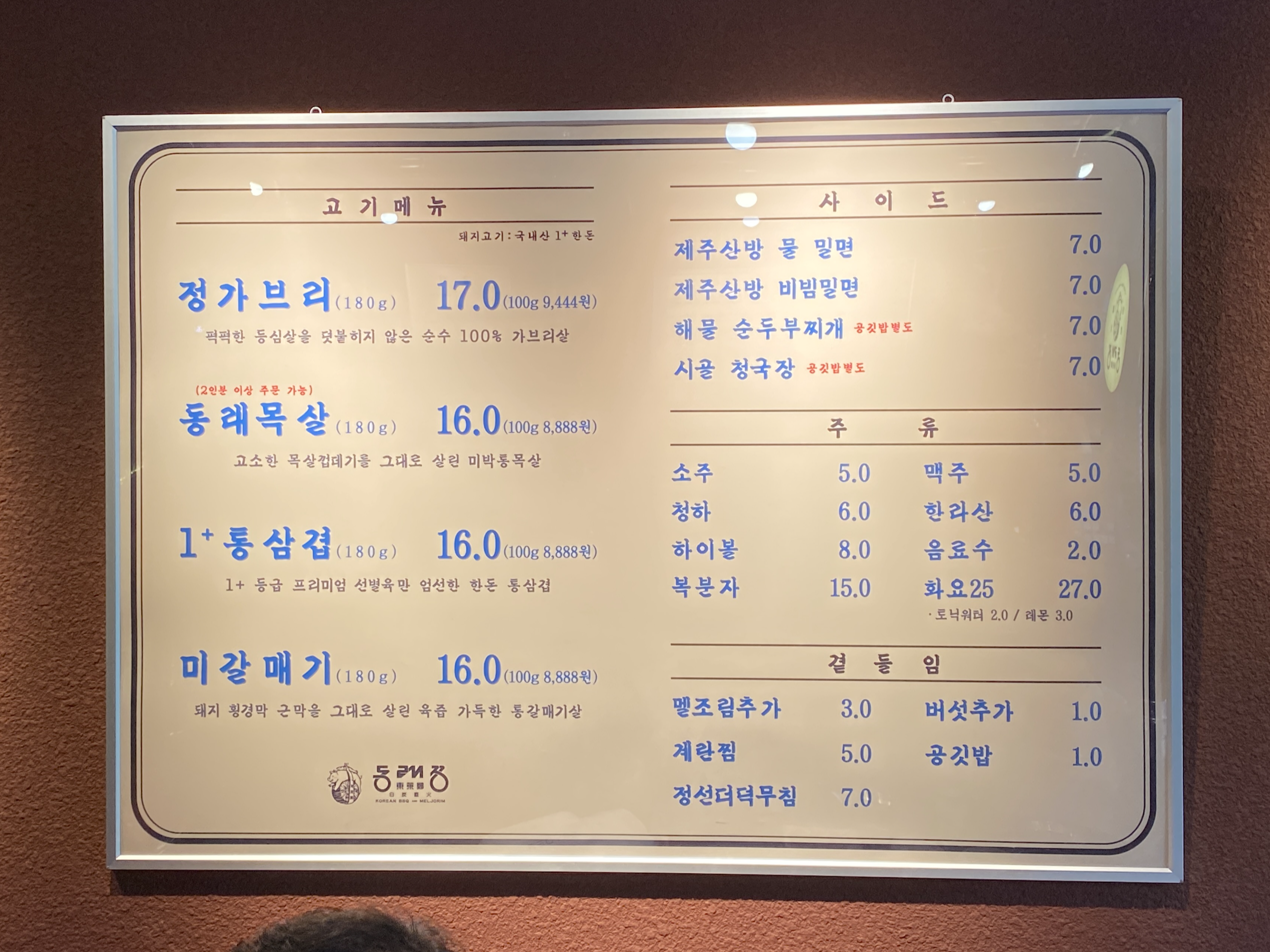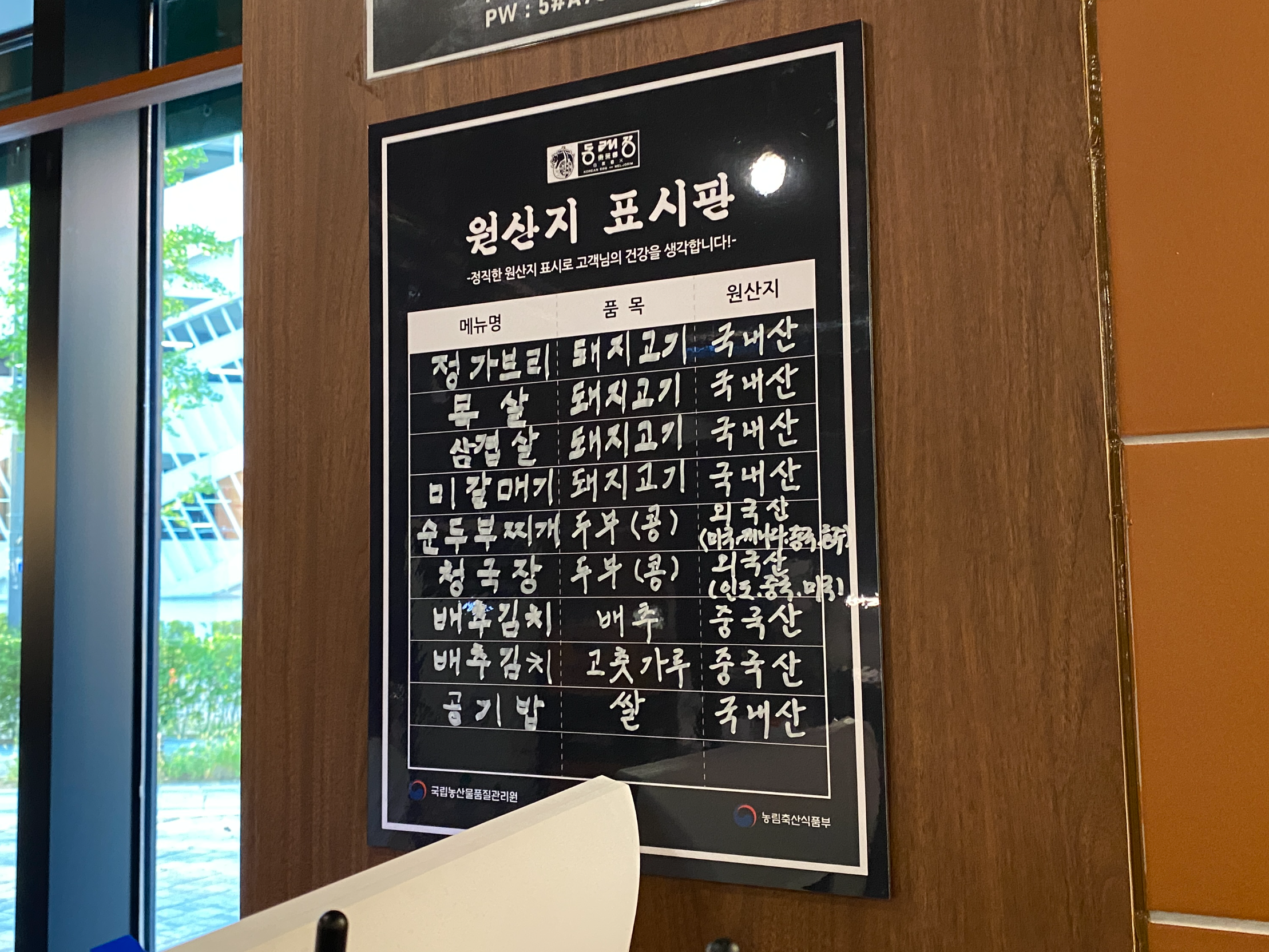 메뉴판 옆으로 이런 공지가 적혀있는데