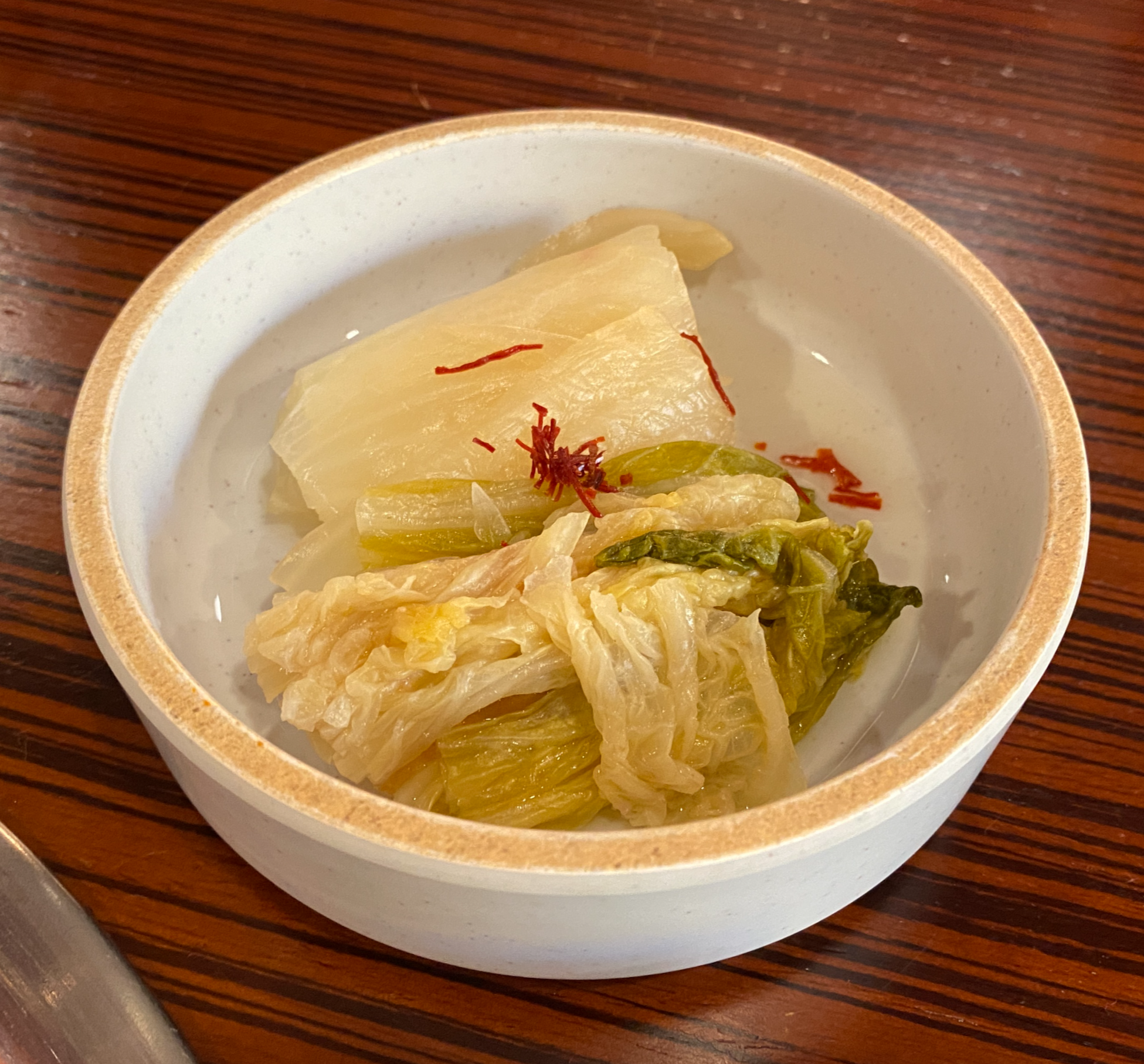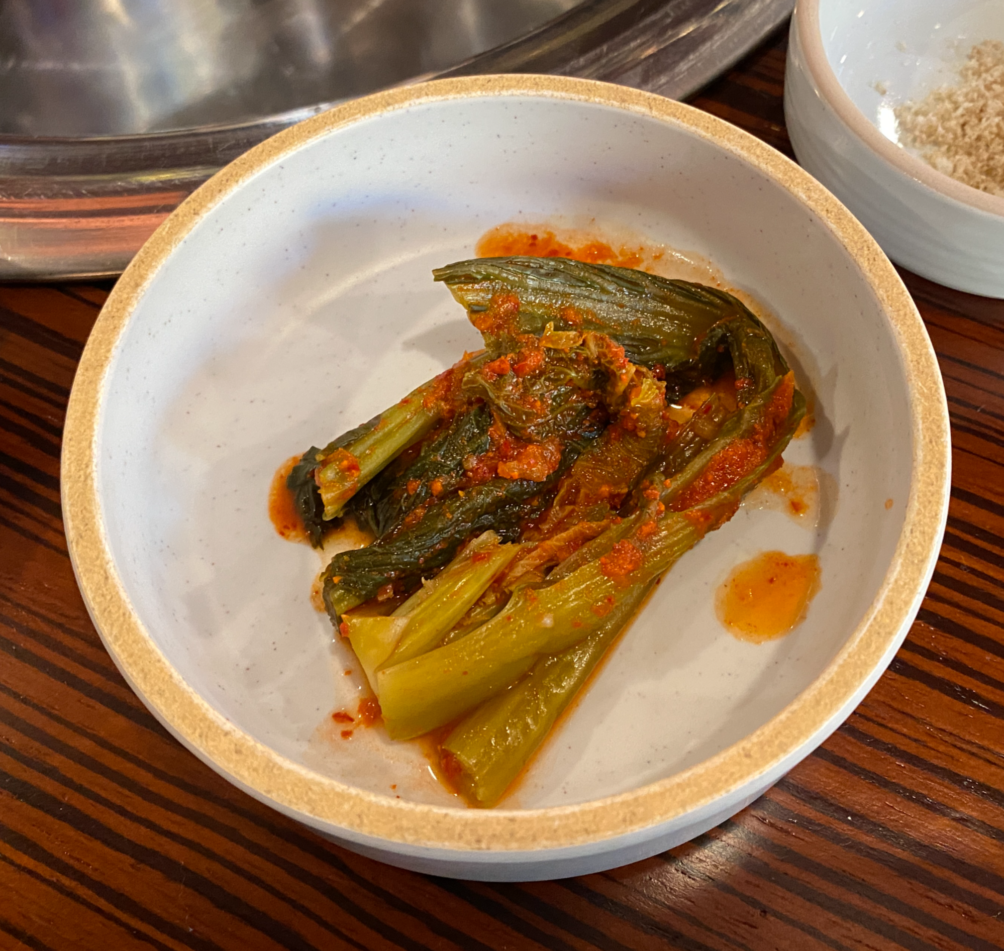 갓김치는 많이 익어서 새콤했고, 백김치는