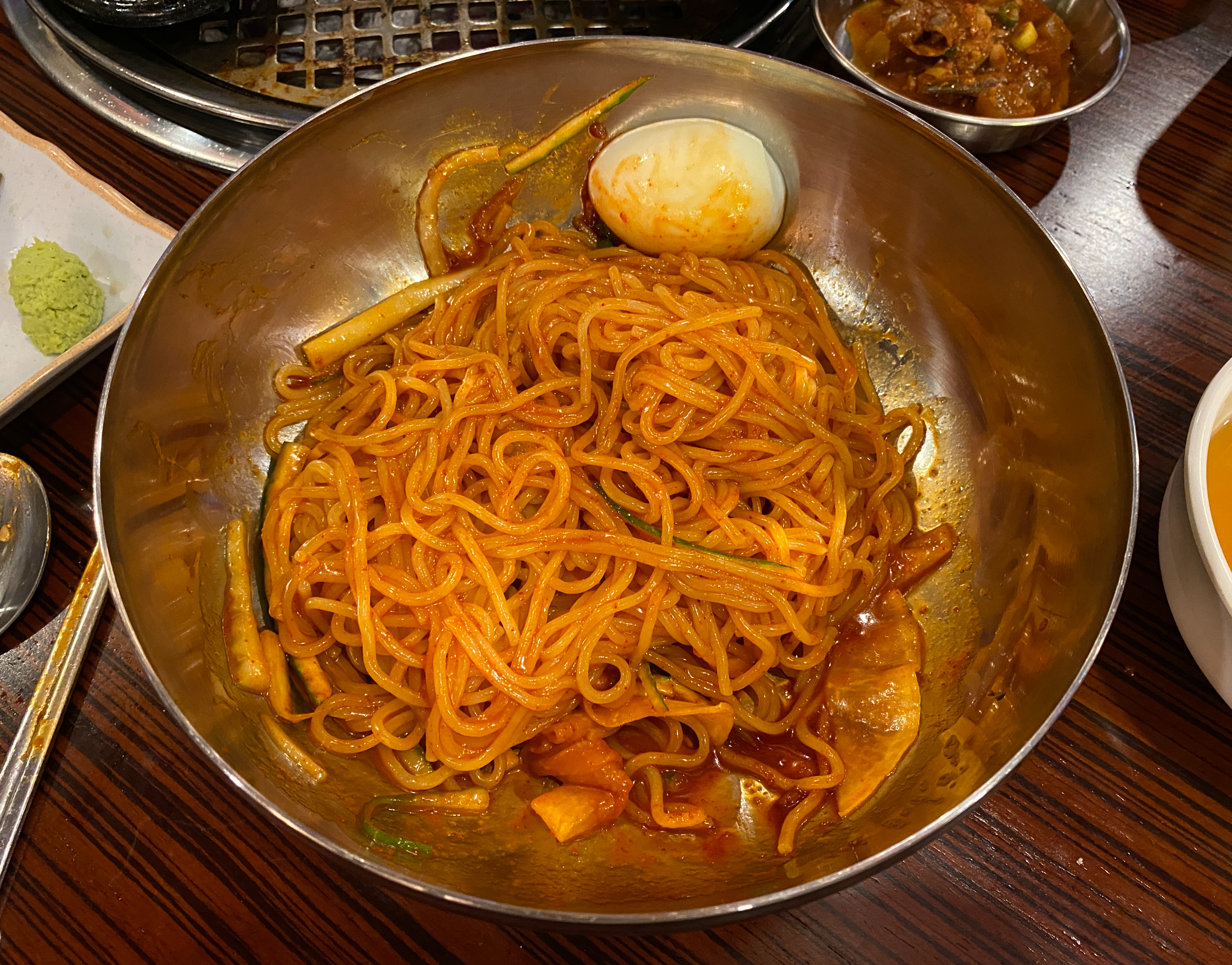 식사메뉴로 공기밥과 비빔밀면을 주문했다.