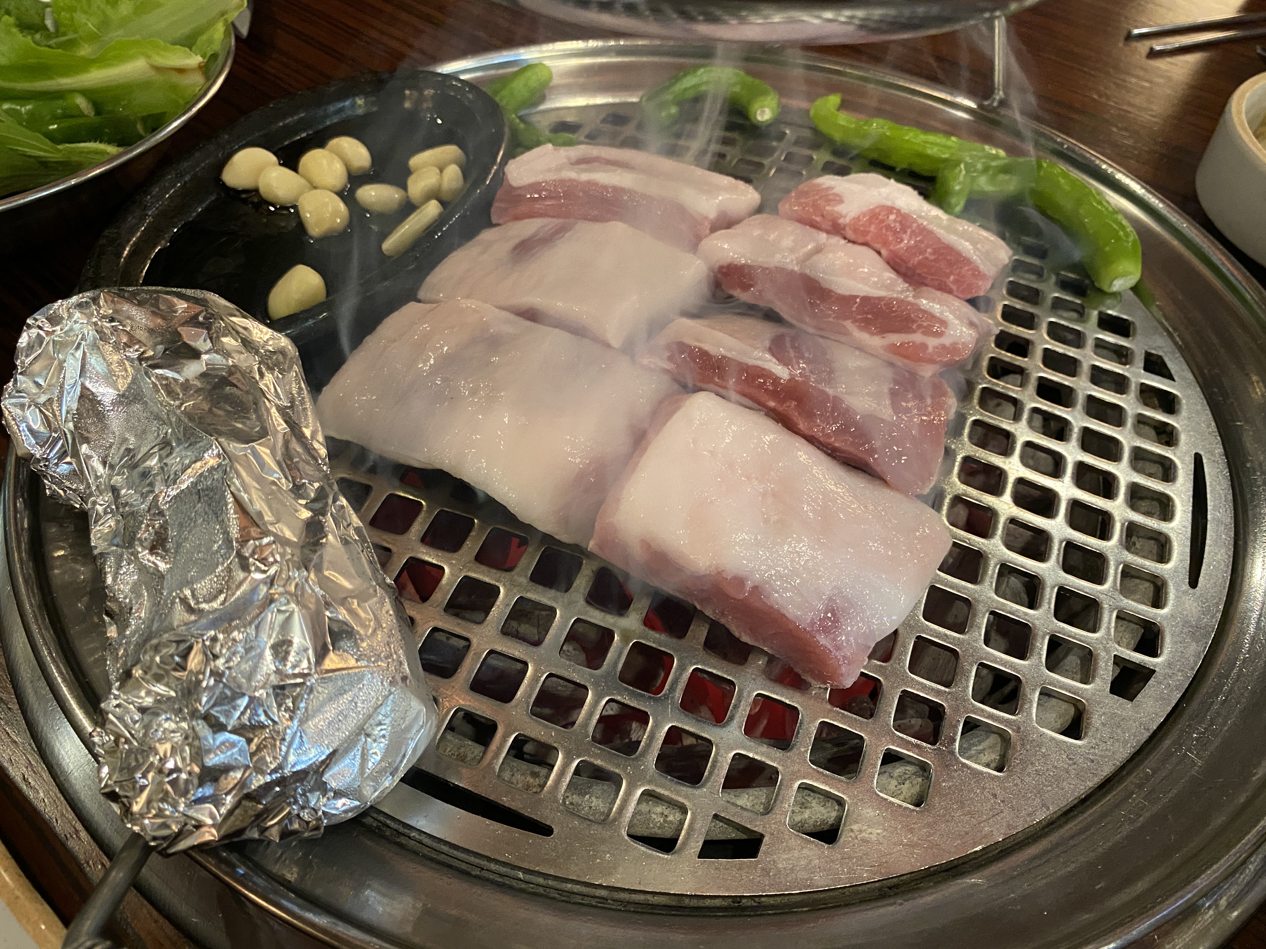 불판 한가운데 놓여있던 은박지에는