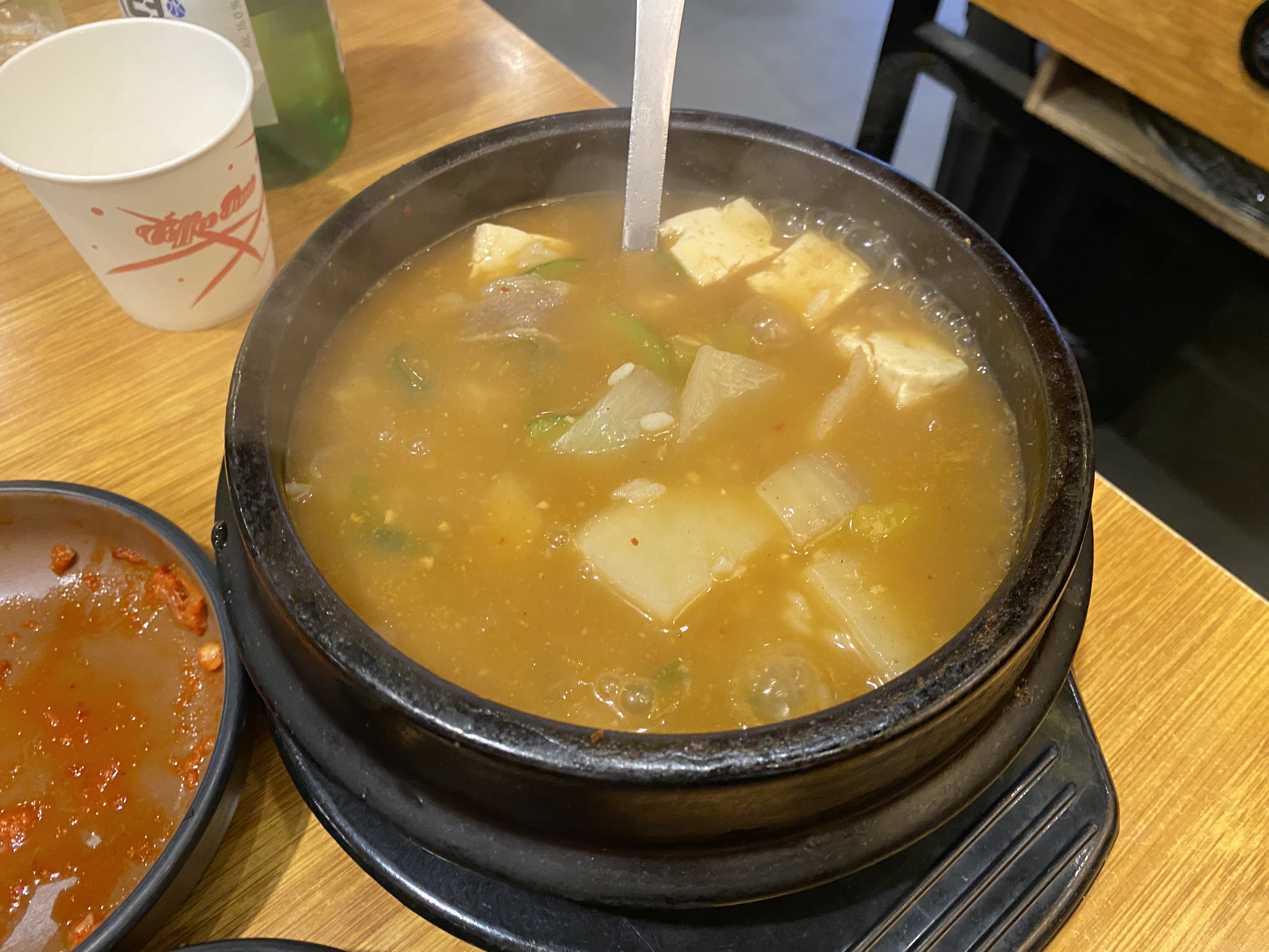 맛은 청국장 베이스에 자극적이지 않고 구수했다.