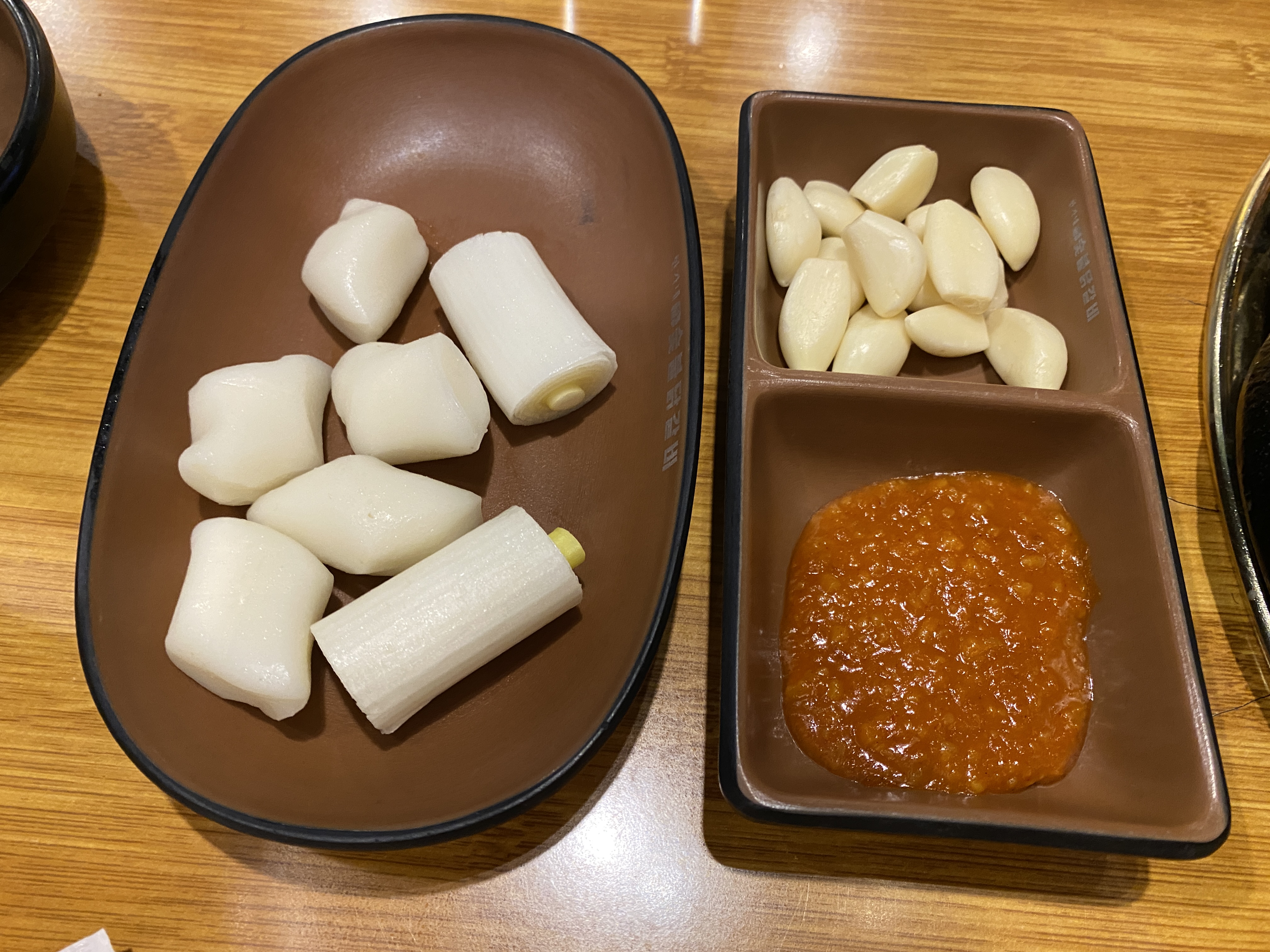 빨간소스, 소금, 떡+대파, 마늘+쌈장도 나왔는데
